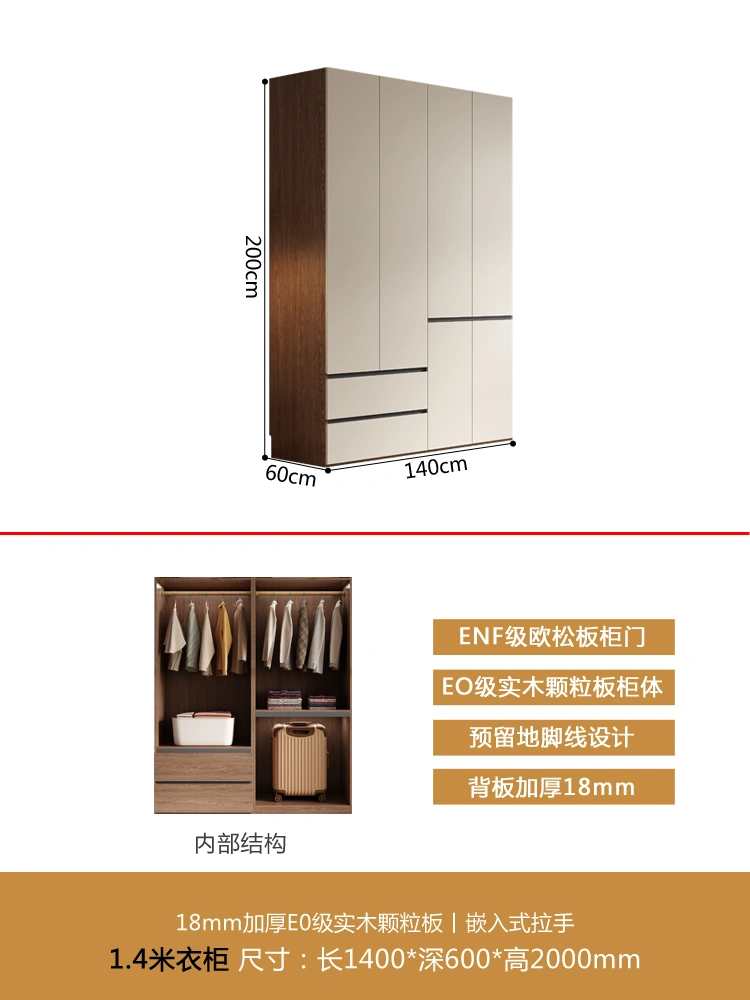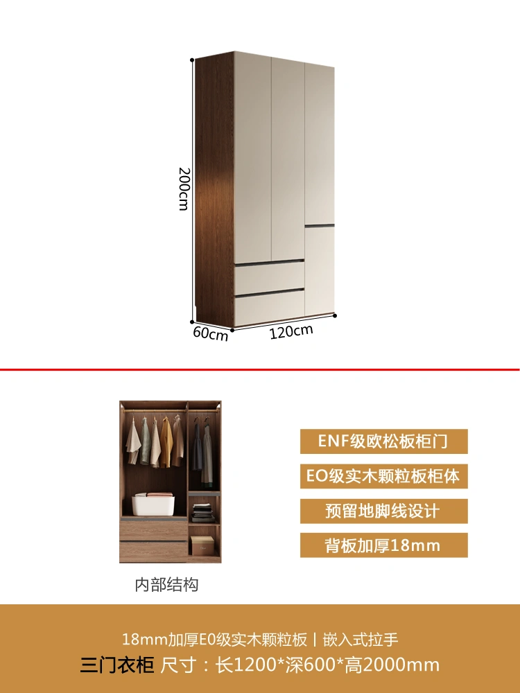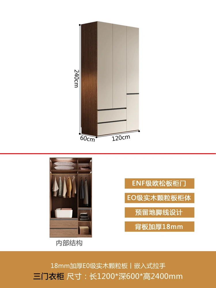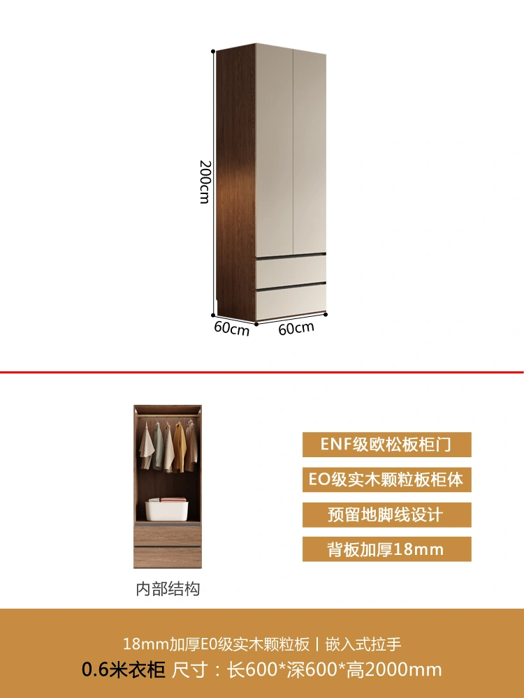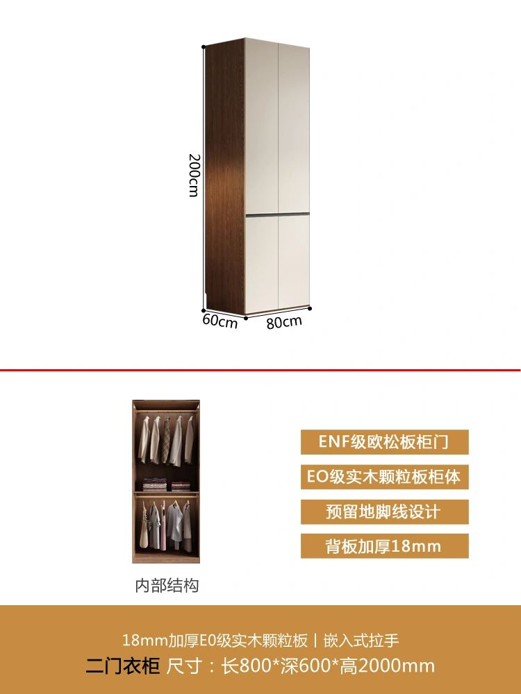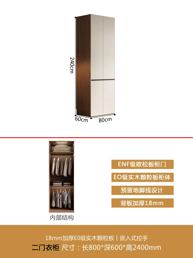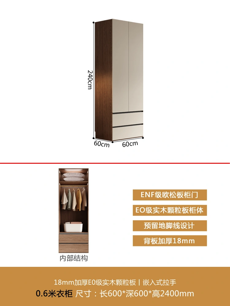 One Door-to-Top Wardrobe Modern Minimalist For Home Bedroom Segmented Handless-Free Small Apartment Cream-Style Solid Wood Wardrobe