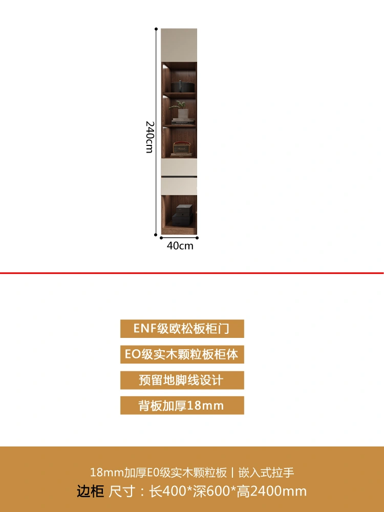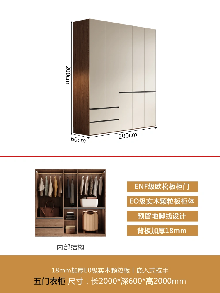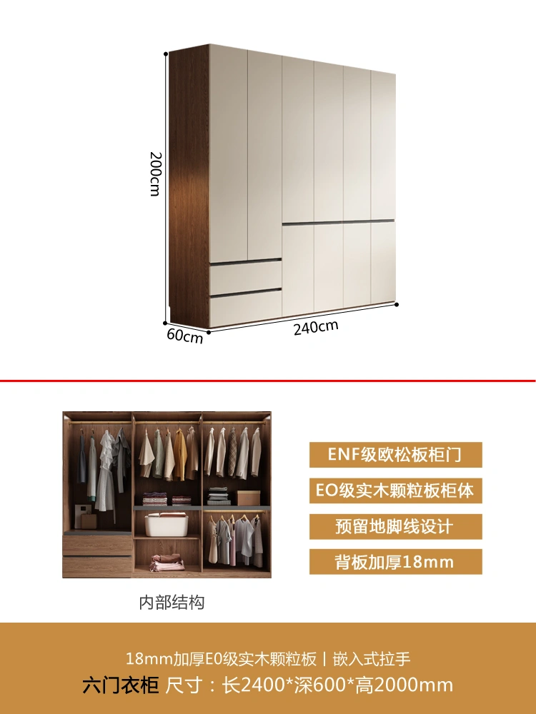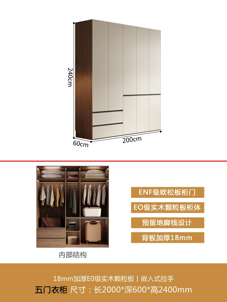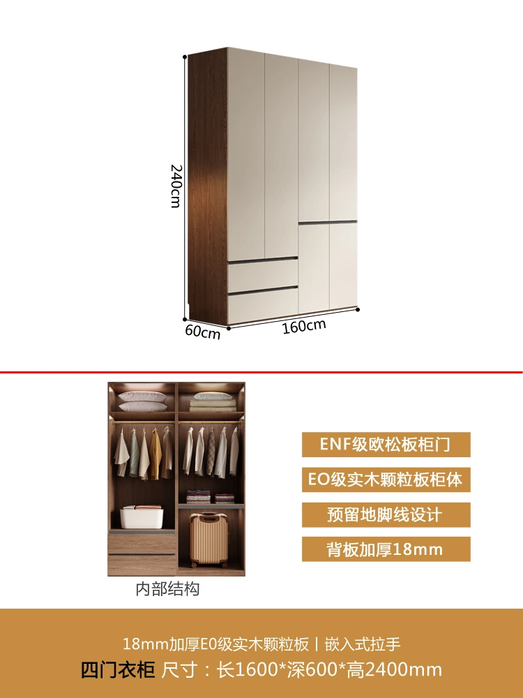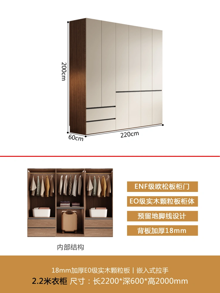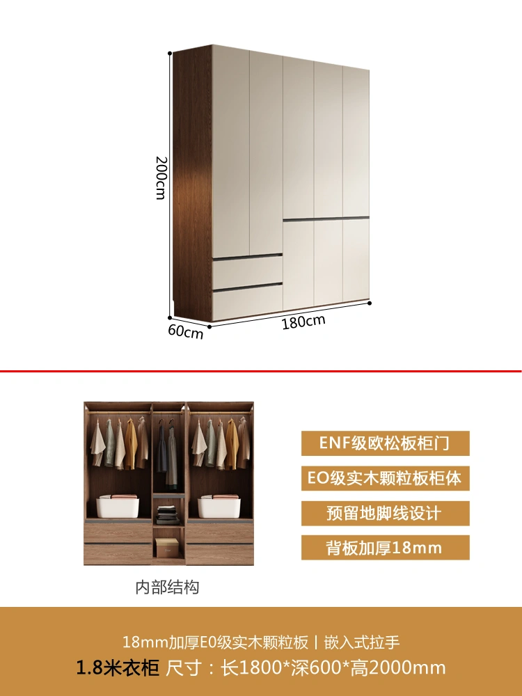 One Door-to-Top Wardrobe Modern Minimalist For Home Bedroom Segmented Handless-Free Small Apartment Cream-Style Solid Wood Wardrobe
