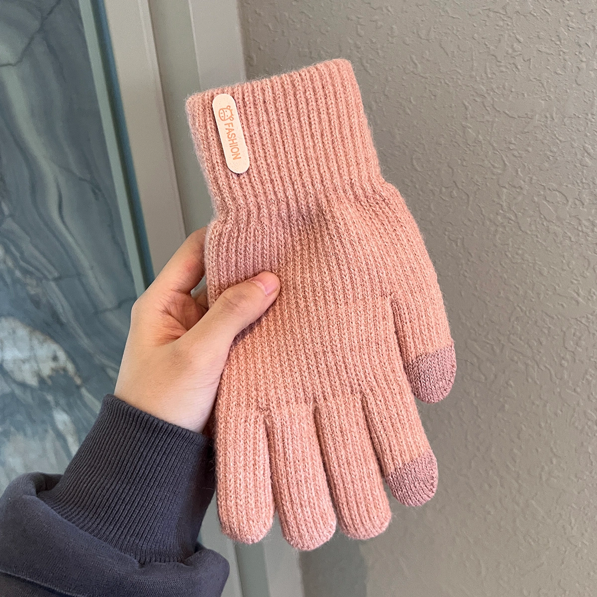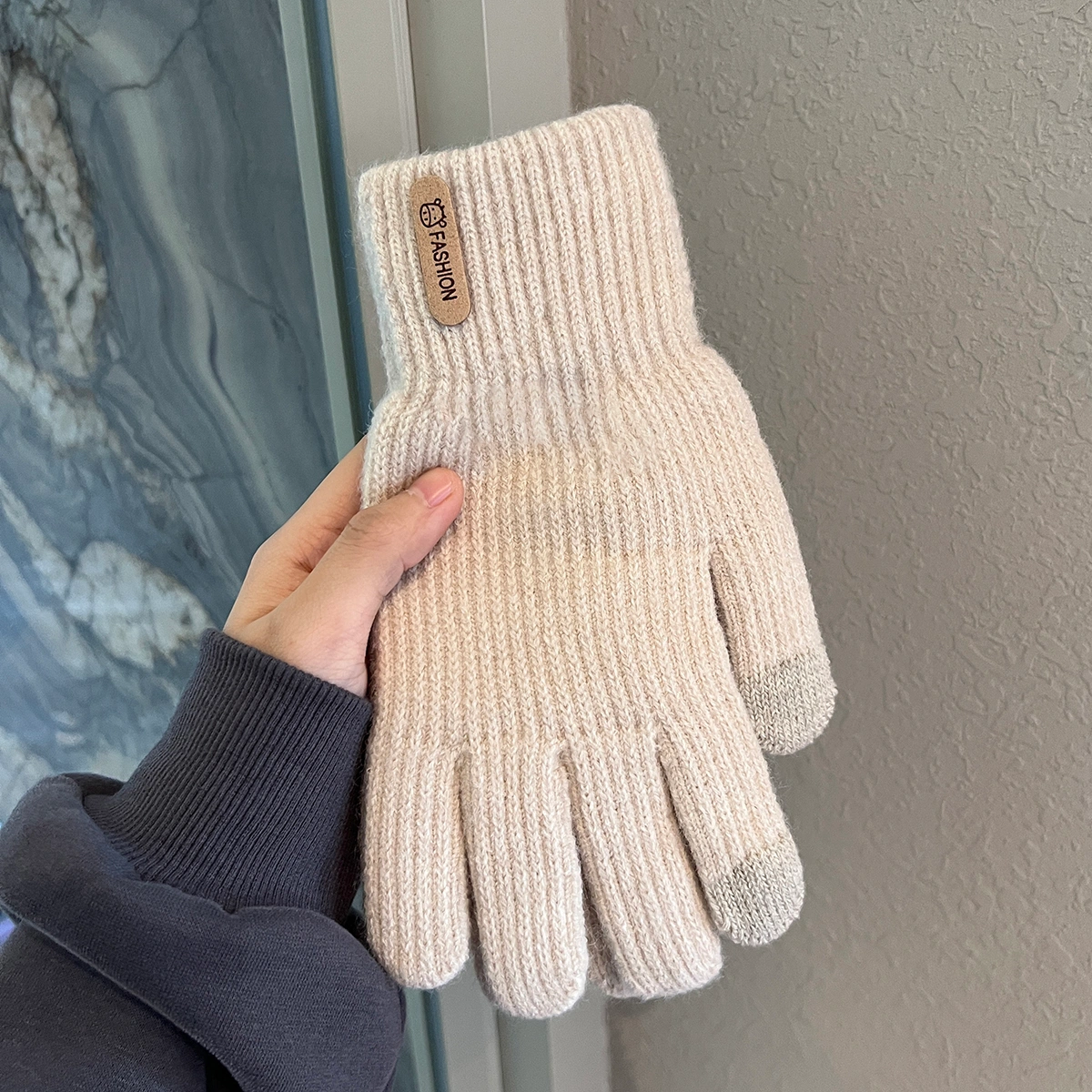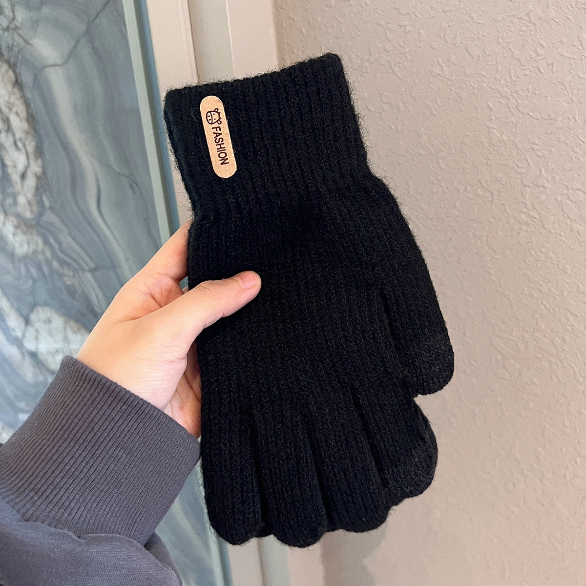 Touchscreen Gloves for Winter, Unisex, Korean Style, Solid Color, Knitted, Thickened, Cold-Proof, Warm, for Students, Outdoor Cycling, Five-Finger