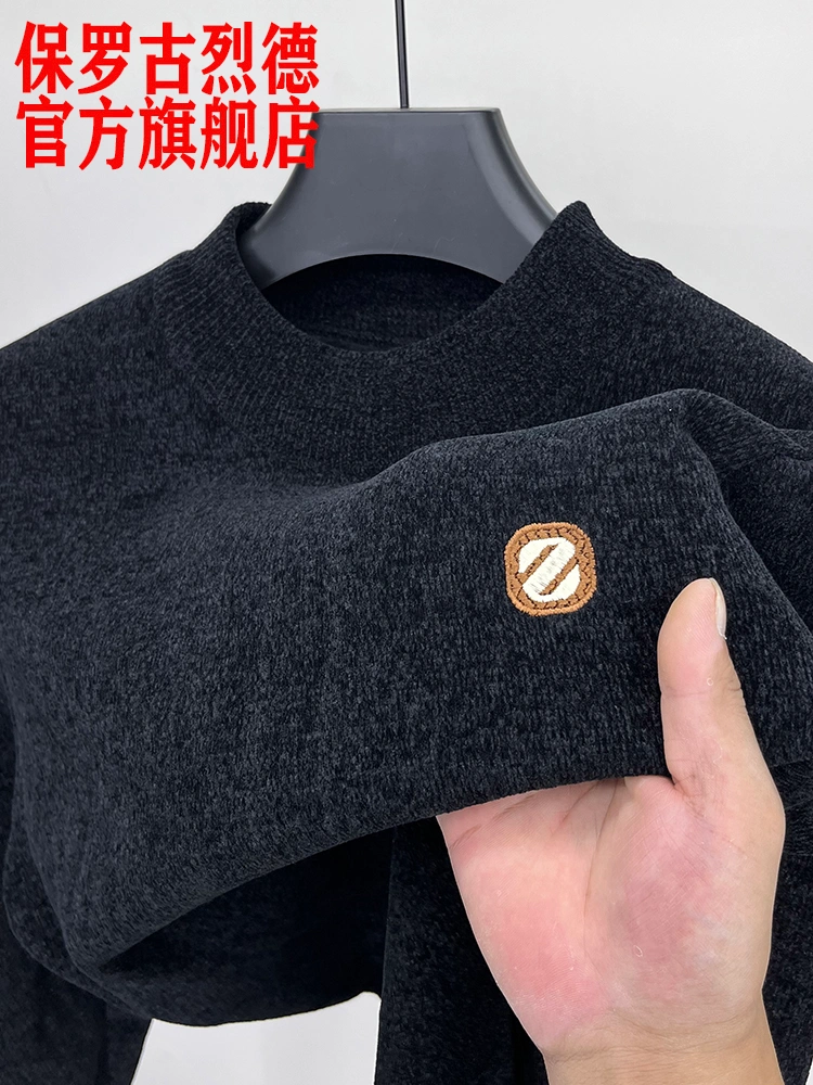 Paul Chenille One-Piece Fleece Sweater for Men, Fleece-Lined Warm Knitted Sweater, New Winter Half-Turtleneck Base Shirt