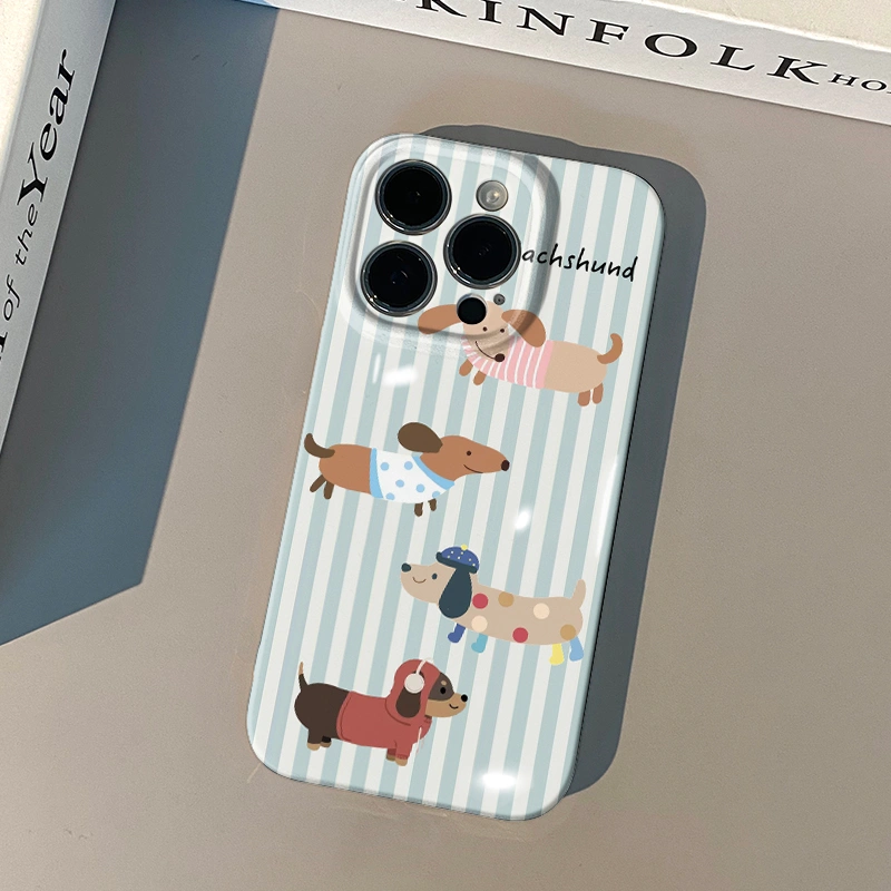 Ins-Style Striped Cartoon Cute Dachshund Suitable for Huawei Film Oppo Case Apple 15 New Iphone14/13/12Promax Phone Case Realme Redmi Xiaomi 13Pro/Ultra