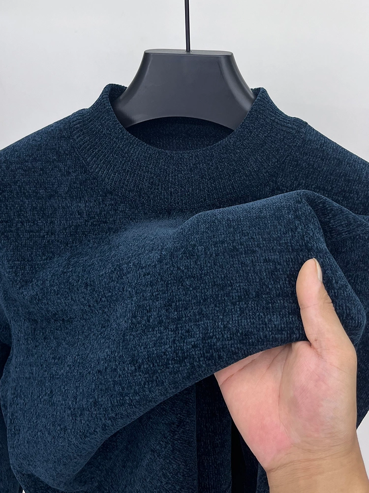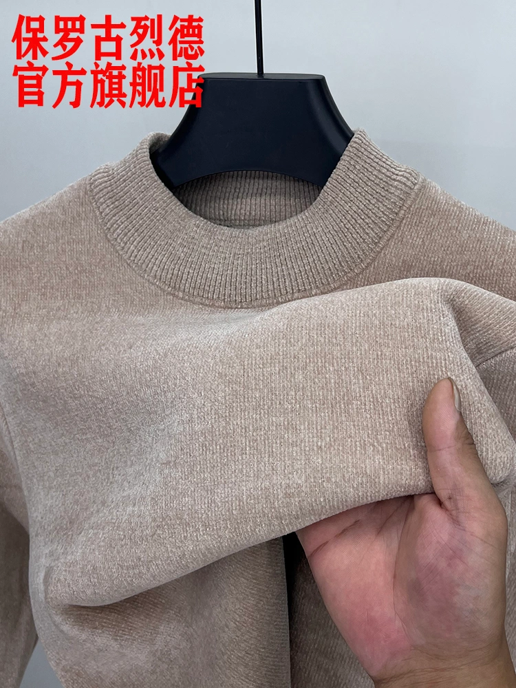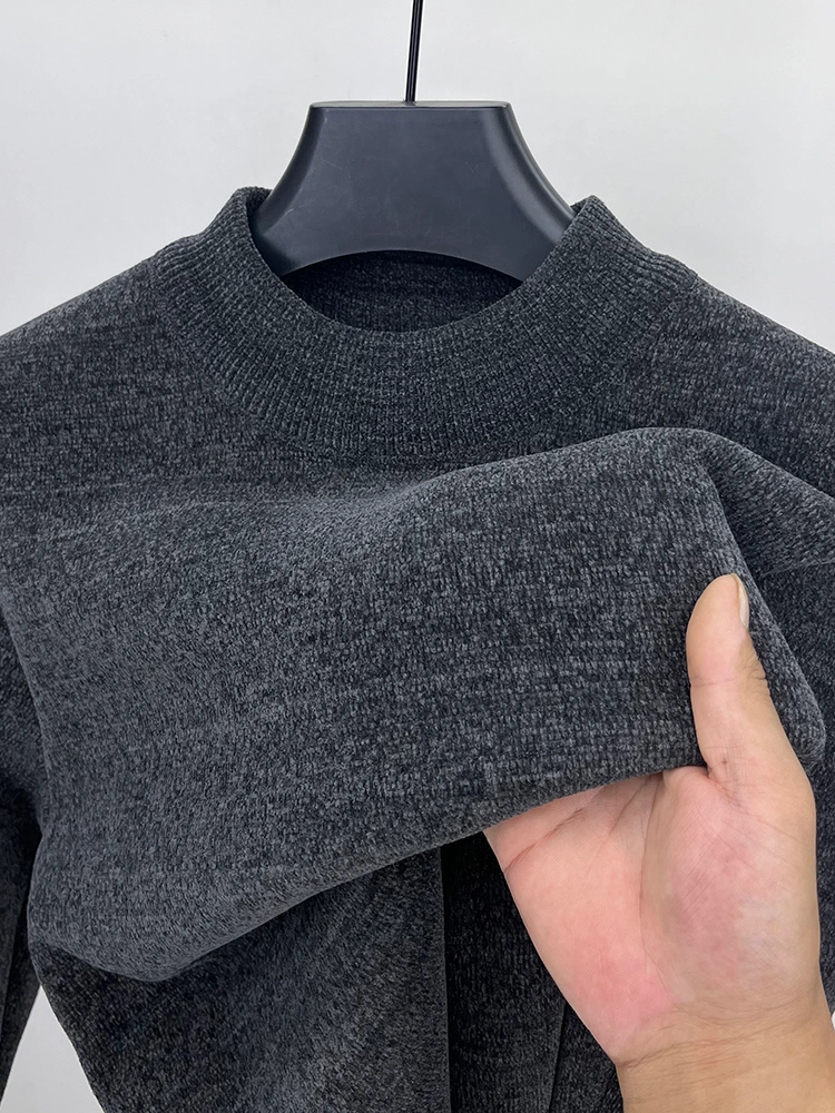 Paul Men's Sweater Winter Fleece Chenille Knit Sweater Solid Color Half Turtleneck Warm Fleece-Lined Base Shirt