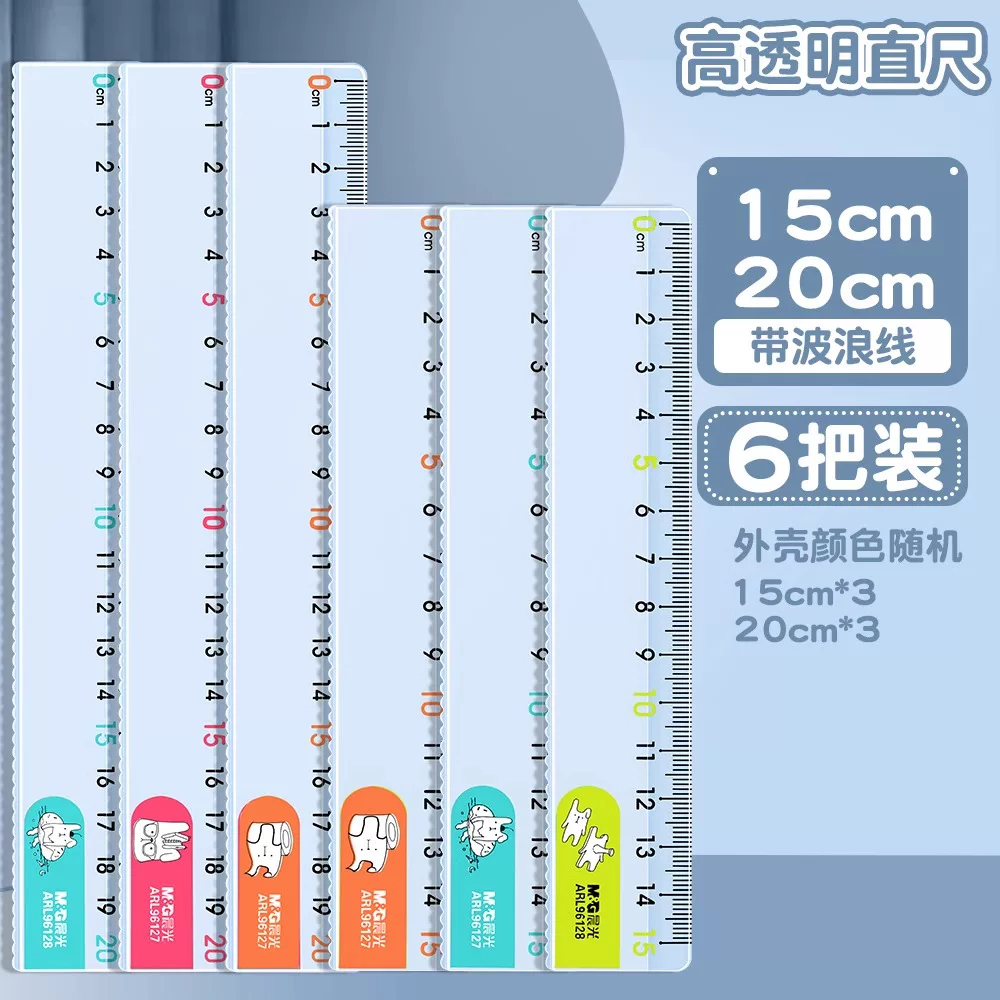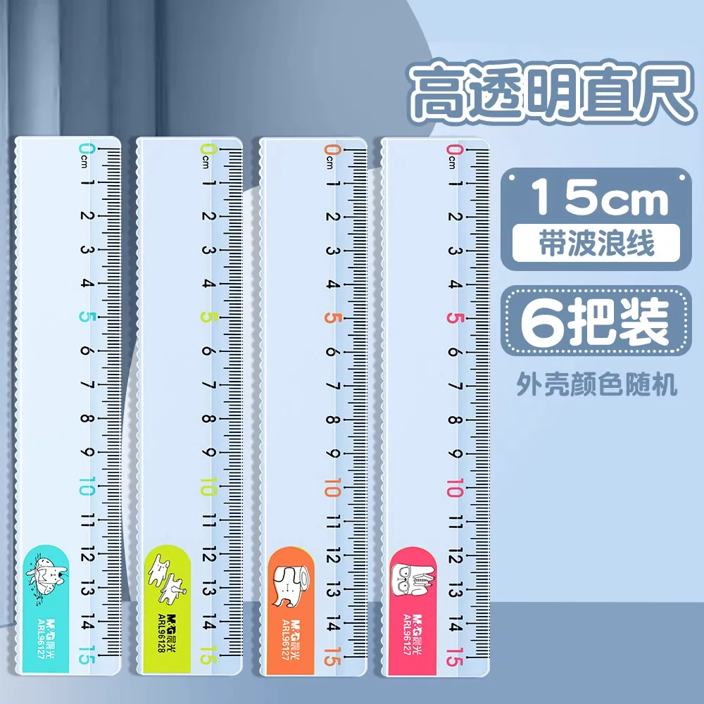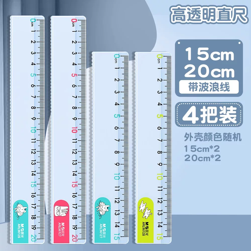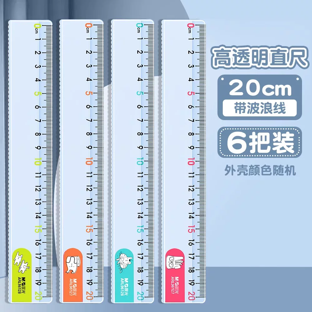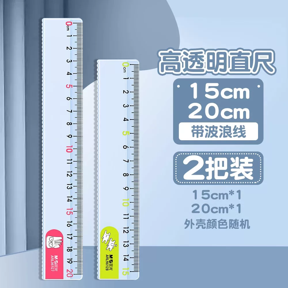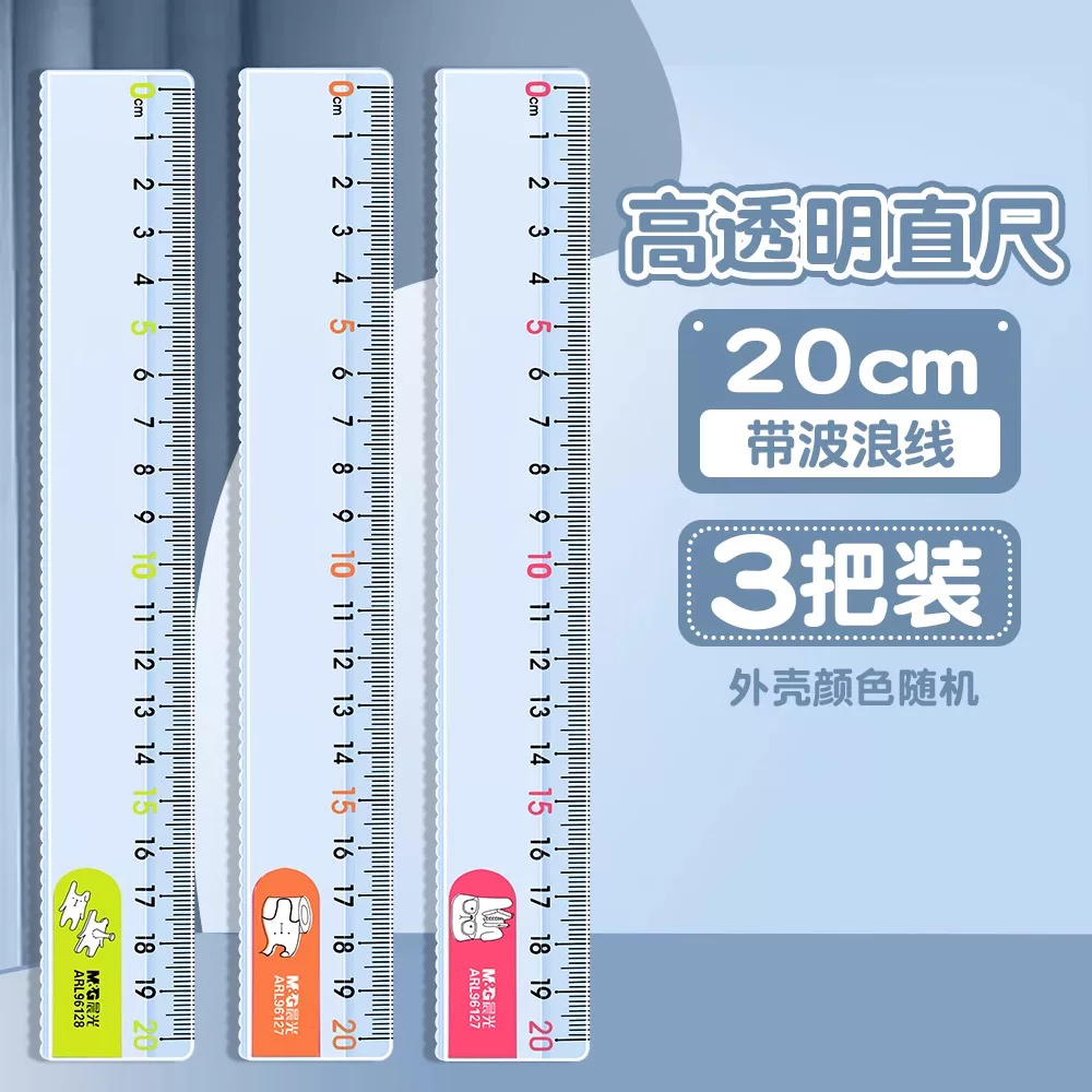 Morning Light Wave Ruler Transparent Large Number Ruler with Wavy Lines 15Cm/20Cm Kidsren's DIY Cartoon Cute Ruler
