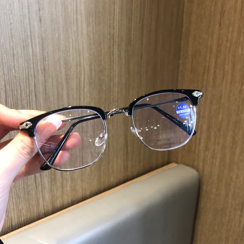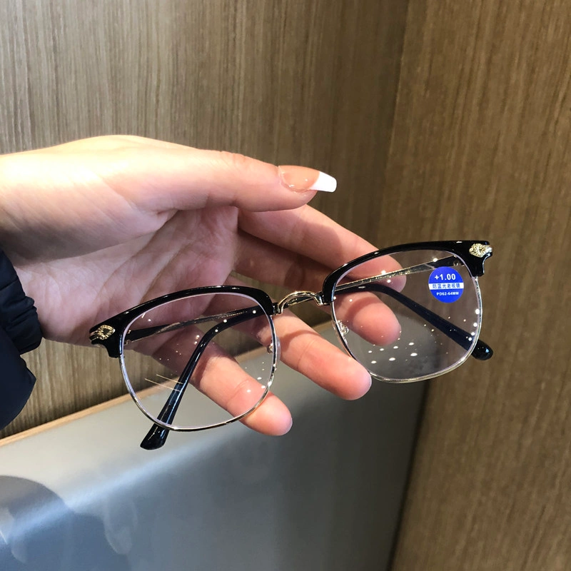 Anti-Blue Light Reading Glasses for Men, Metal Large Frame, Business Style, Fashionable, Not Easy to Cause Fatigue, High-End Reading Glasses for Women