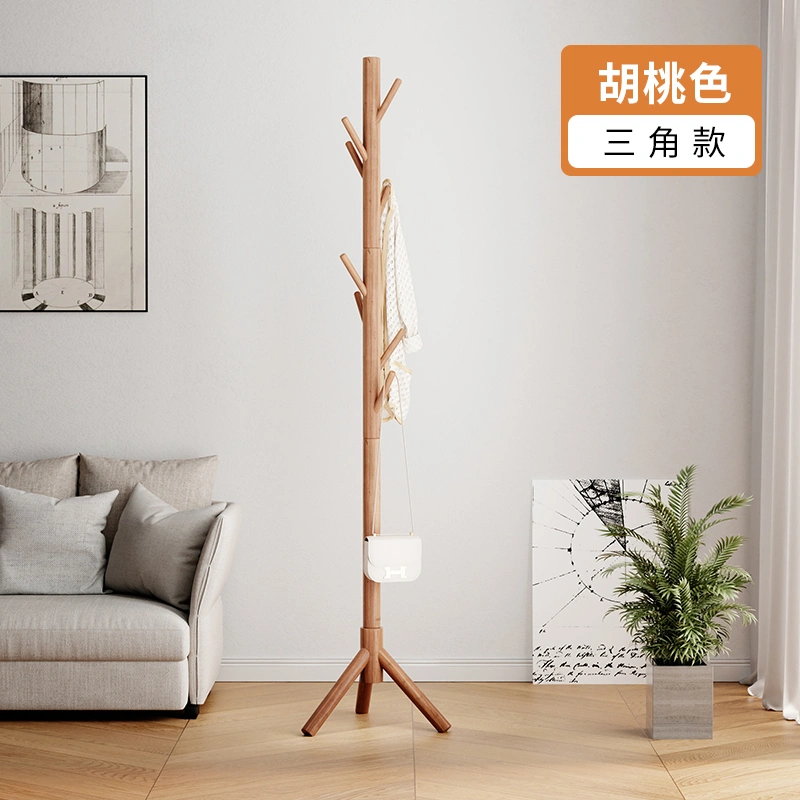 Solid Wood Clothes Rack, Floor-Standing Coat Rack, Indoor Clothes Rack for Living Room, Simple Vertical Clothes Rod, Bedroom Home Bag Rack