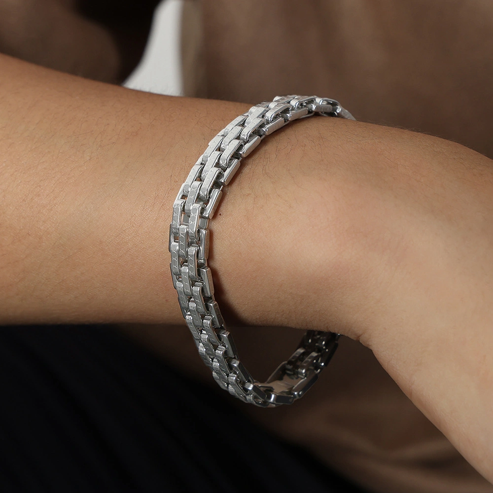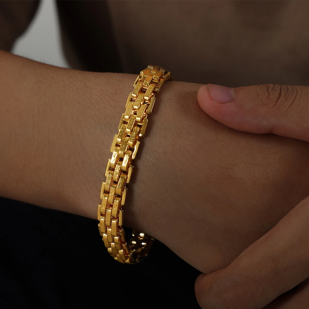 Medieval-Style Simple and Versatile High-End Jewelry, Intricately Crafted Textured Strap Design, Titanium Steel Gold-Plated Bracelet