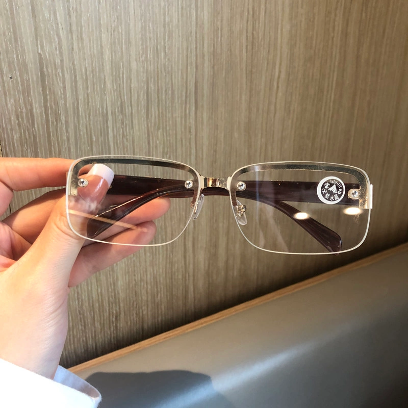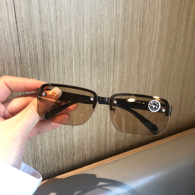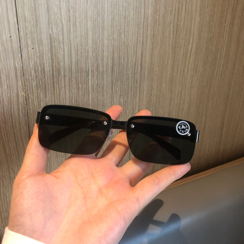 Authentic Crystal Stone Glasses Men's Sunglasses for Large Faces, Rimless, Perforated, Fashionable, Light-Blocking, Driving, Fishing Sunglasses, Trendy