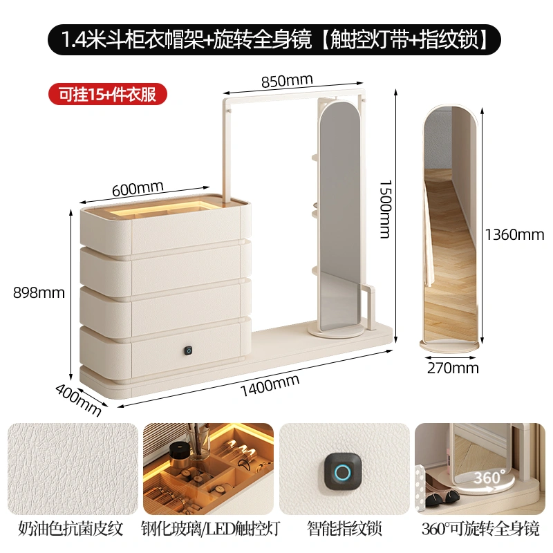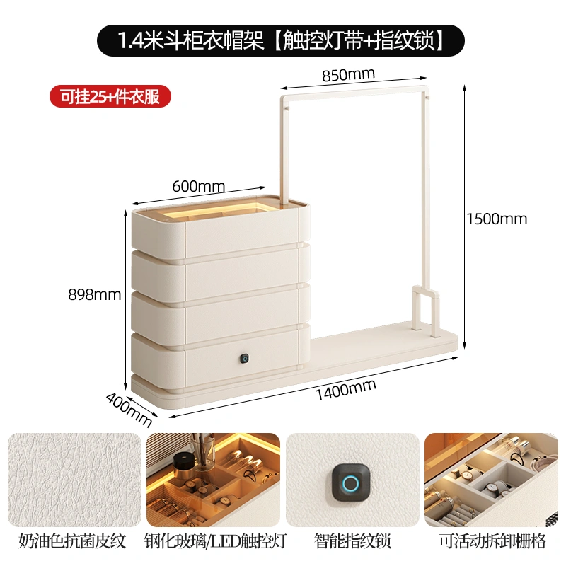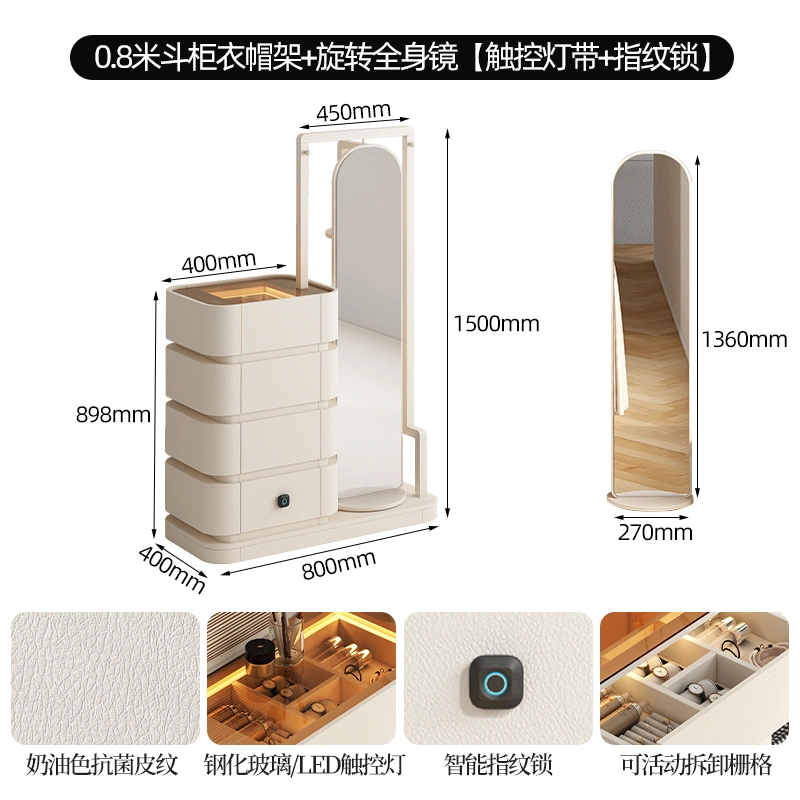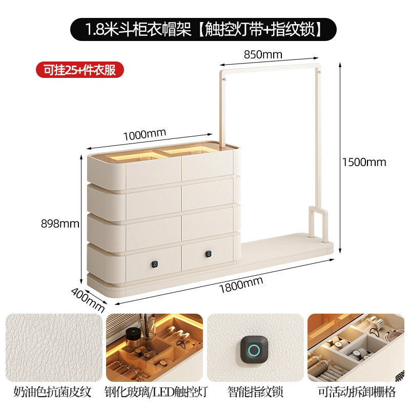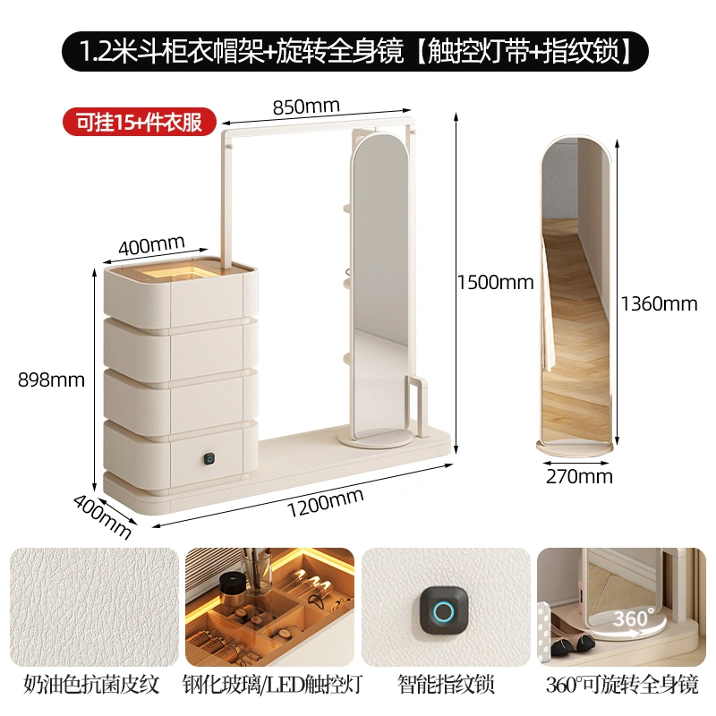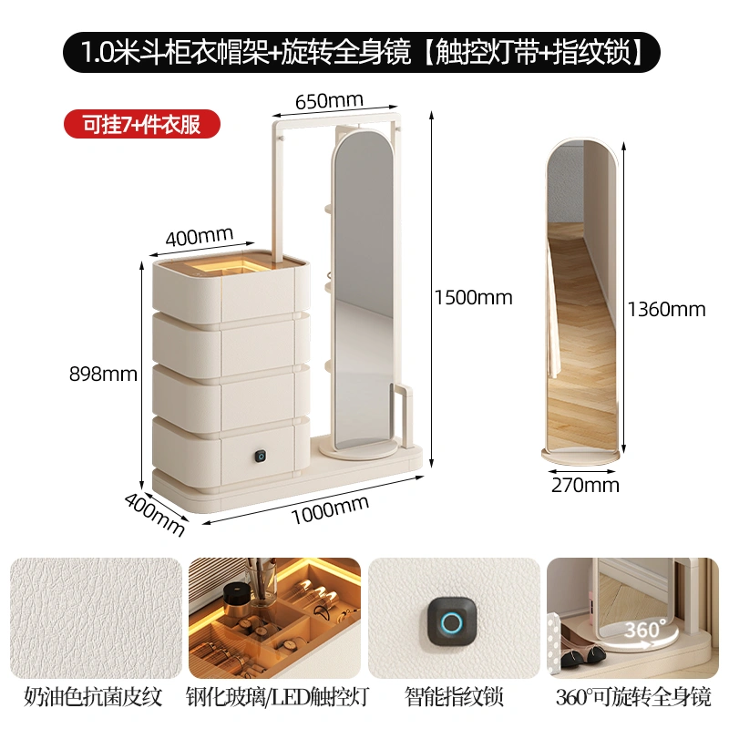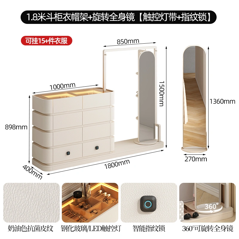 Cream Style Full Hanging Wardrobe Long Hanging Cupboard Bedroom Entry Door Small Apartment Baby Cloakroom Open Wardrobe
