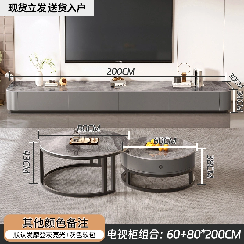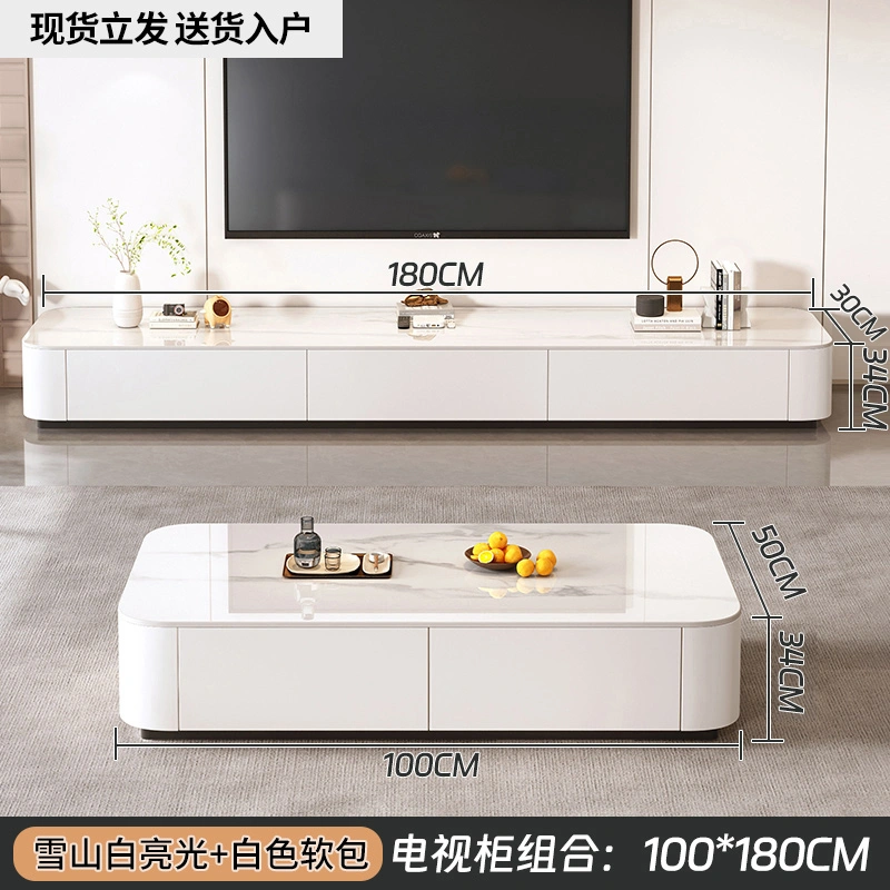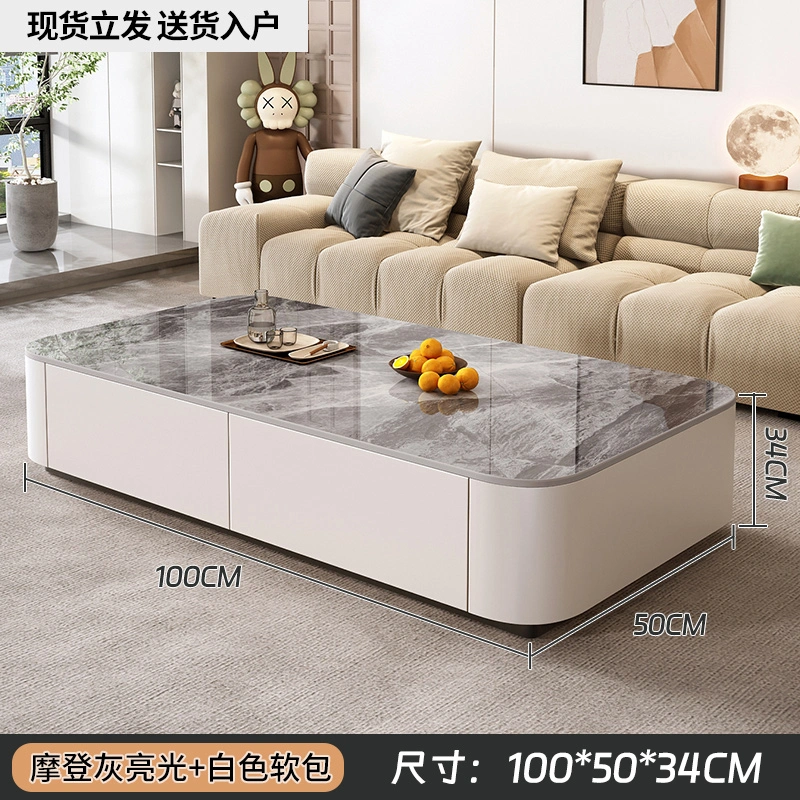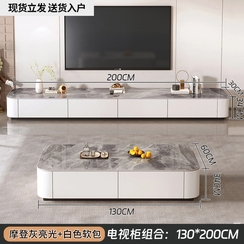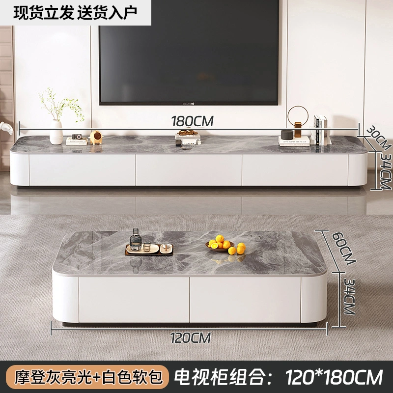 Rock Board Coffee Table Living Room For Home Minimalist 2025 New arrival Small Apartment Fancy Floor Coffee Table TV Cabinet Combination