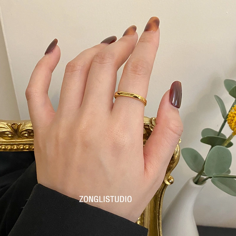 French I Love You Ring, Gold Titanium Steel, Non-Fading, Niche Design, Plain Band, Light Luxury, Vintage, High-End Feel