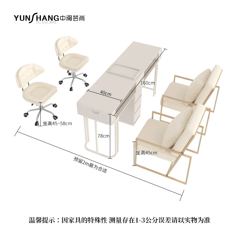 Zhongmin Shangpin Cream Style Manicure Table and Chair Set Combination with Baking Lamp Vacuum Cleaner Socket Manicure Table for Skin Stain-Resistant