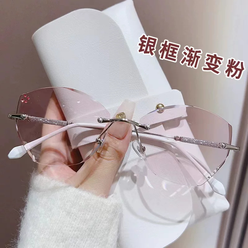 New Style Diamond-Encrusted High-Definition Anti-Blue Light Reading Glasses for Women, Progressive Pink Frameless Edge-Cut Glasses That Make You Look Younger and More Elegant