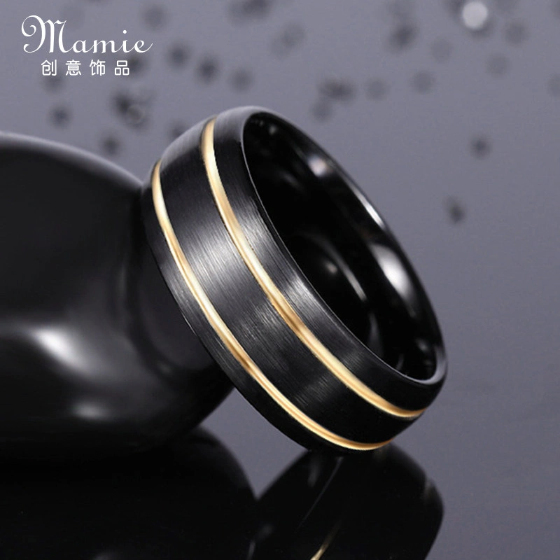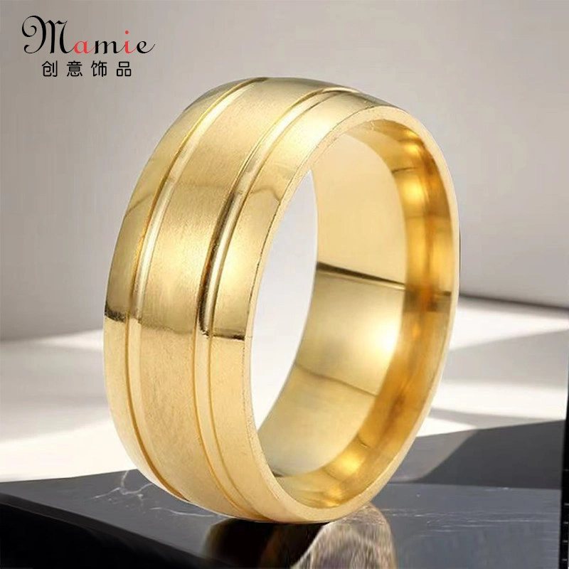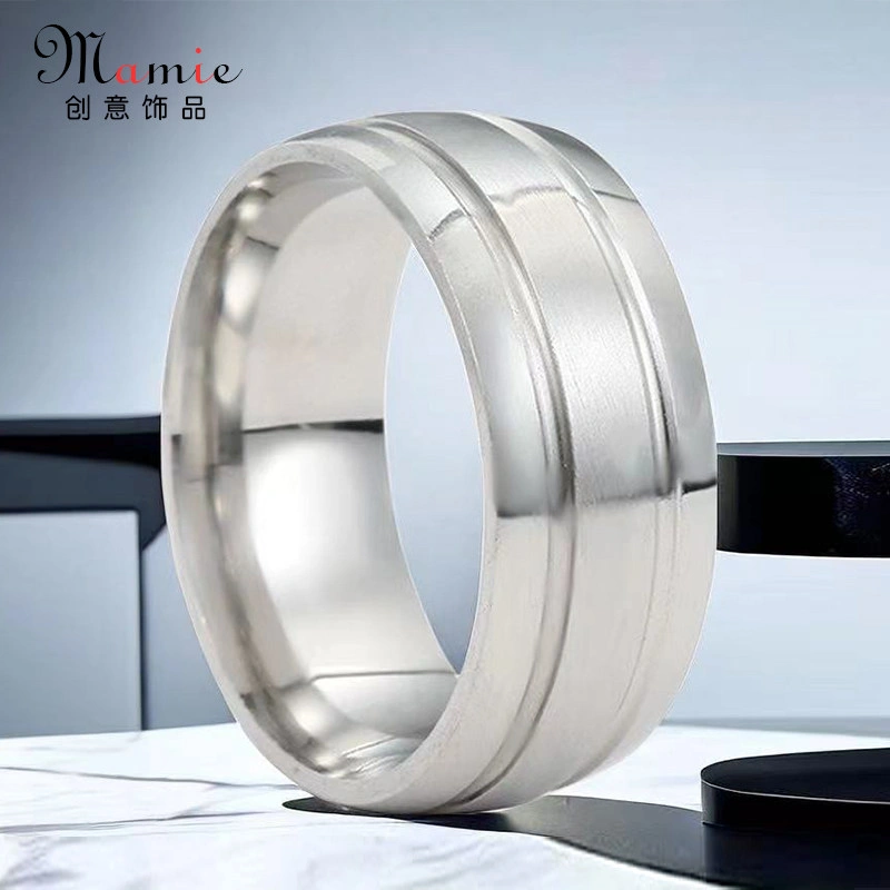 Wish Classic Matte Plain Ring, Wide Surface 8mm, Double Groove, Two-Tone, Unisex Titanium Steel Ring, Does Not Fade