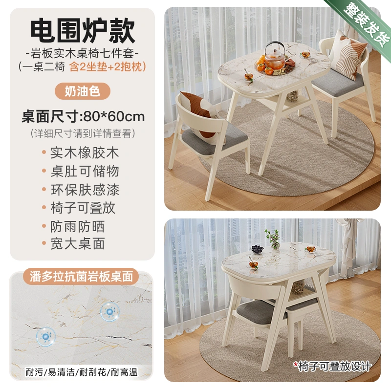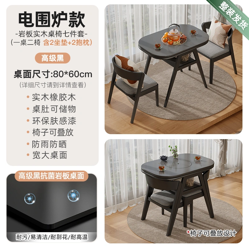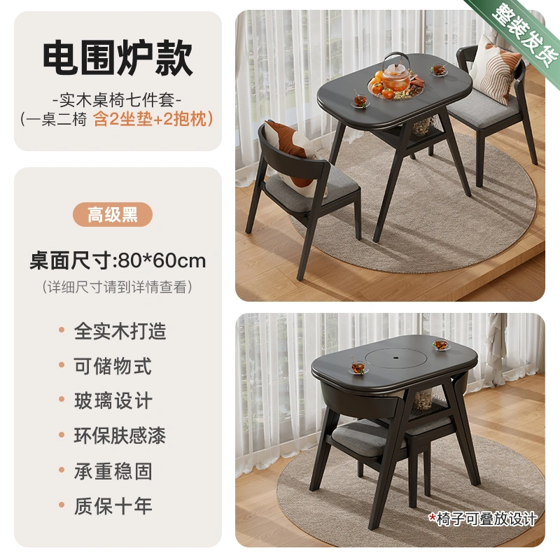 Creative Small Tea Table and Dining Table, Dual-Purpose, 2024 New Model, High-End Small Apartment Black Solid Wood Balcony Table and Tea Table