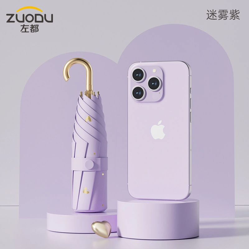 Zuodu Curved Hook Sun Umbrella, Sun Protection and Uv Protection, Mini Ultra-Light Foldable Parasol for Women, 50% off Compact and Portable