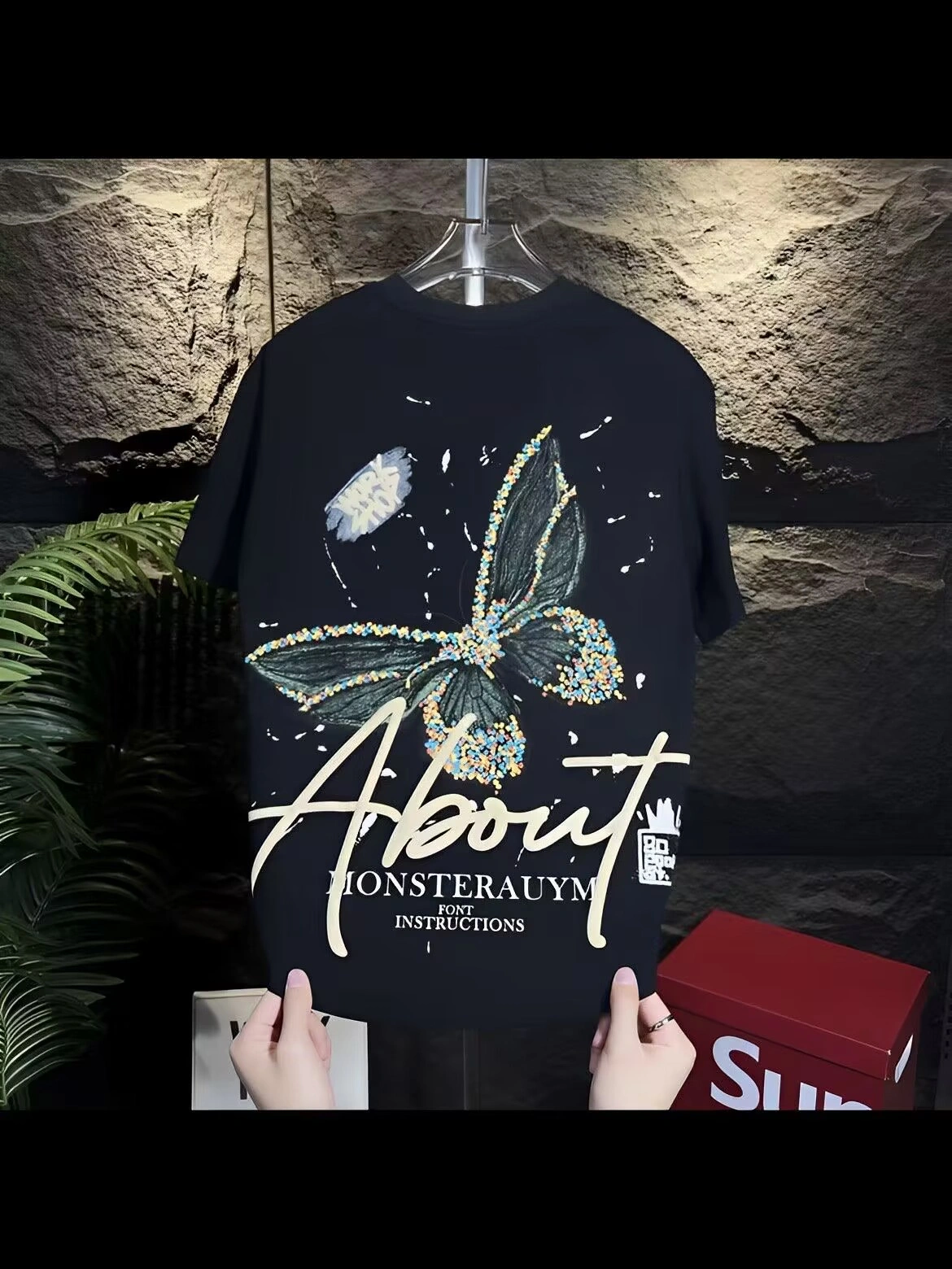 Short-Sleeved T-Shirt for Men, 2025 Autumn New Fashion, Light Luxury, Casual, Versatile, Couple's Butterfly Print Men's Half-Sleeve