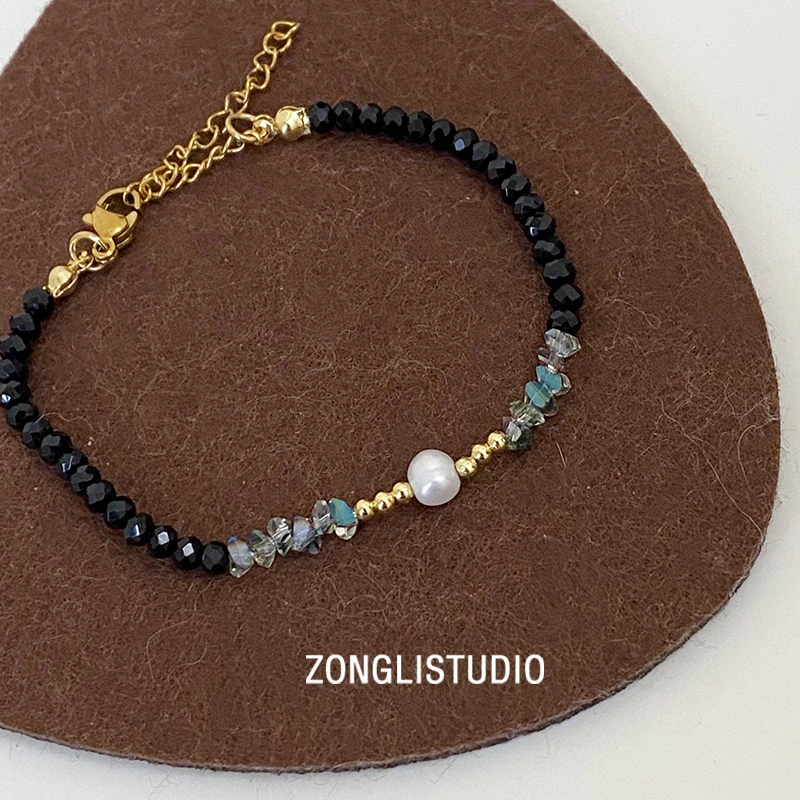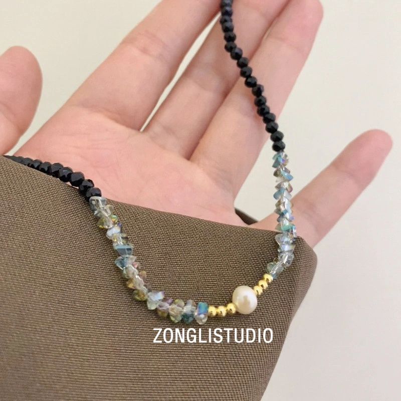 Black Crystal Freshwater Pearl Clavicle Chain, Light Luxury Korean Style Spliced Beaded Necklace, Niche Design, Unique ins