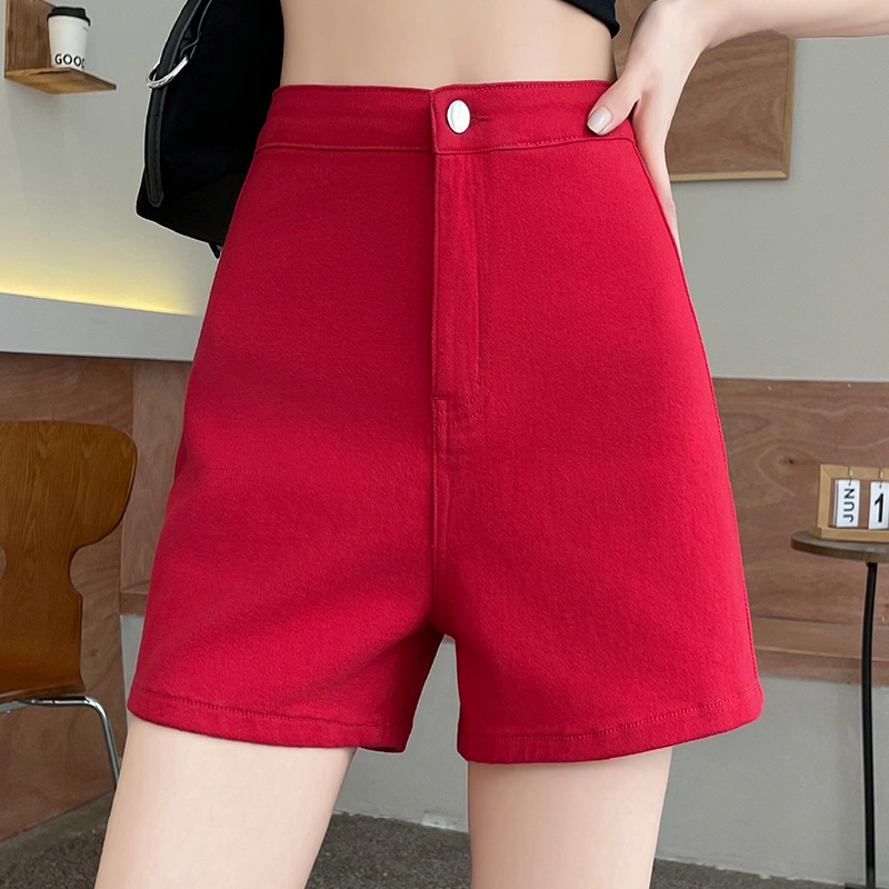 Stretch Denim Shorts for Women, Summer 2025 New Popular Style, High-Waisted, Slim-Fitting, Mid-Length, White, Four-Quarter Straight-Leg Pants