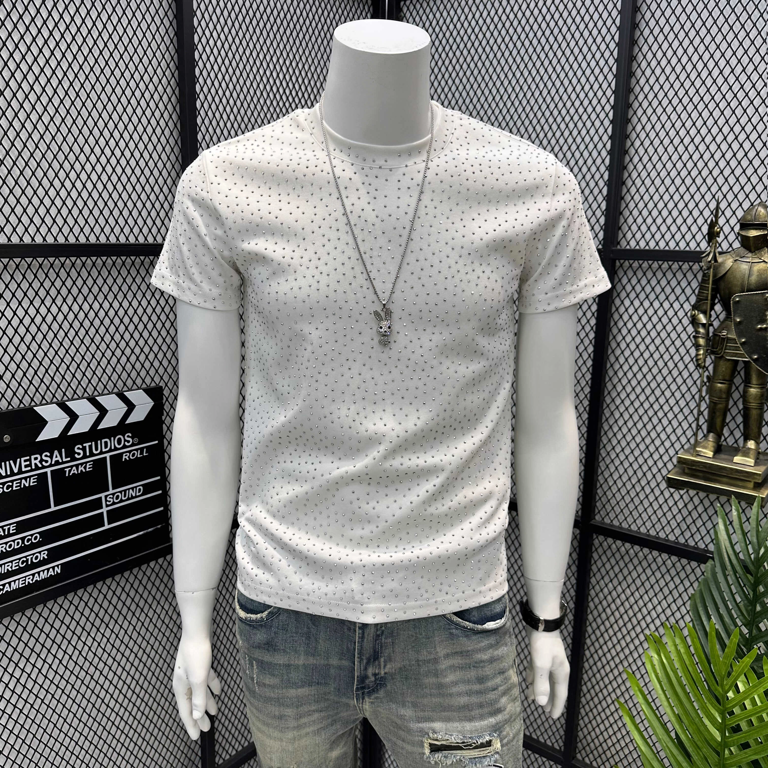 American High Street Boys' Trendy Brand Heavy-Duty Full Rhinestone Fashion Round Neck Short-Sleeve T-Shirt Loose Versatile Retro