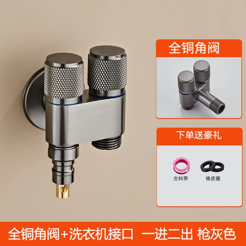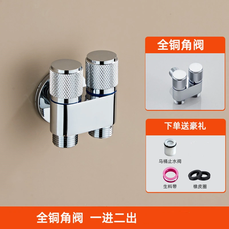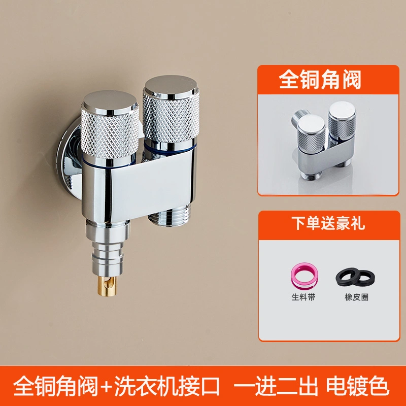 Automatic Water Stop Valve for Washing Machine Faucet, Anti-Detachment, One Inlet and Two Outlets, All-Copper Angle Valve, Universal for Home Use