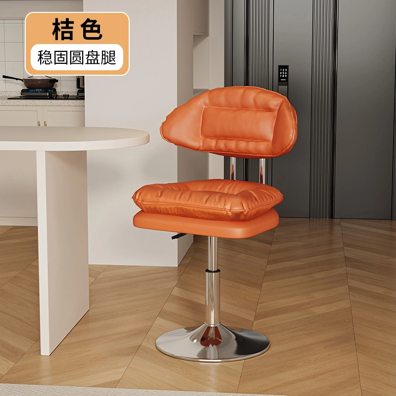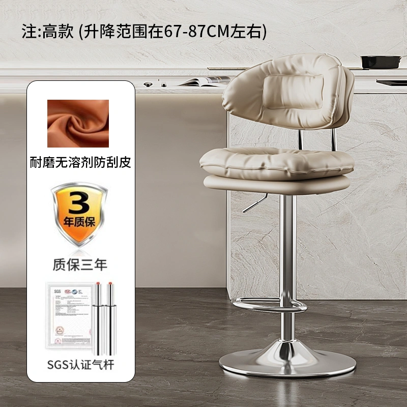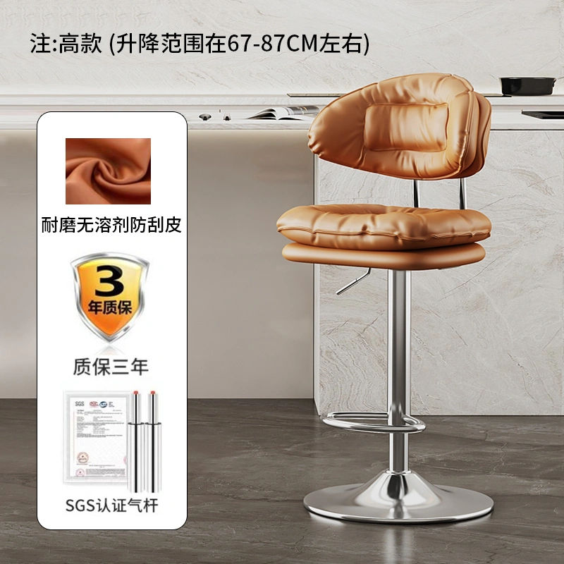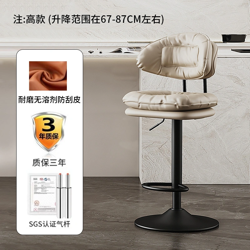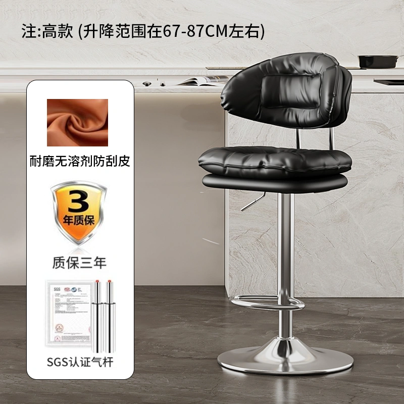 Bar Stool with Adjustable Height, Home Use High Stool, Light Luxury Cashier Desk Reception Chair with Backrest, Swivel Iron Art Bar Chair