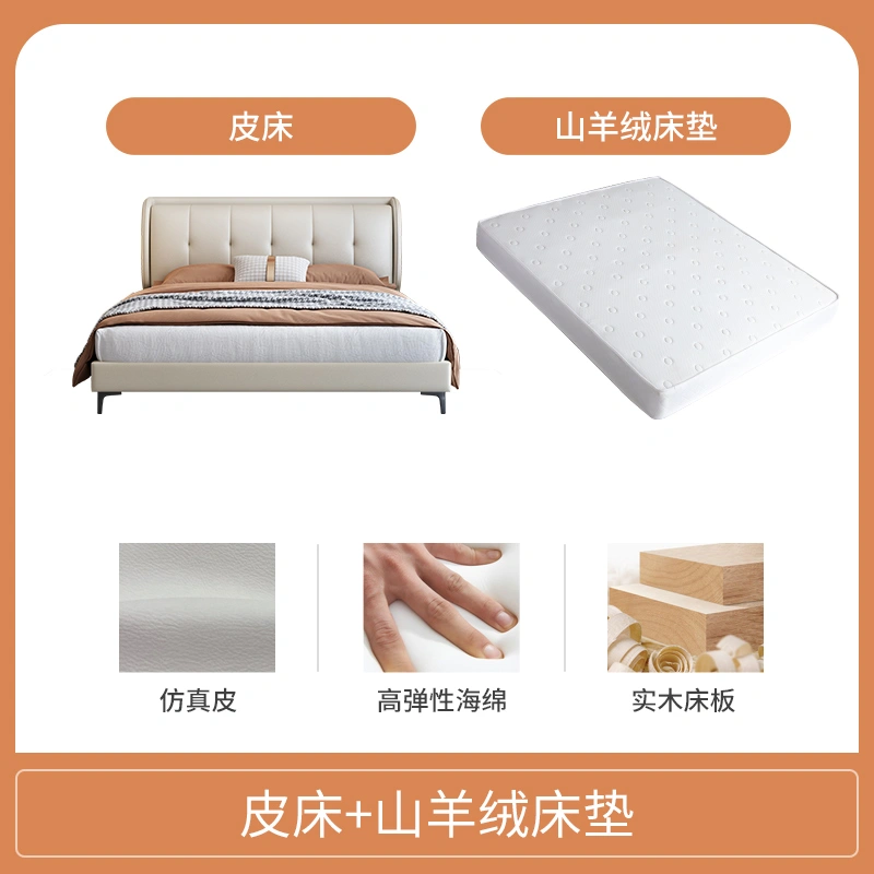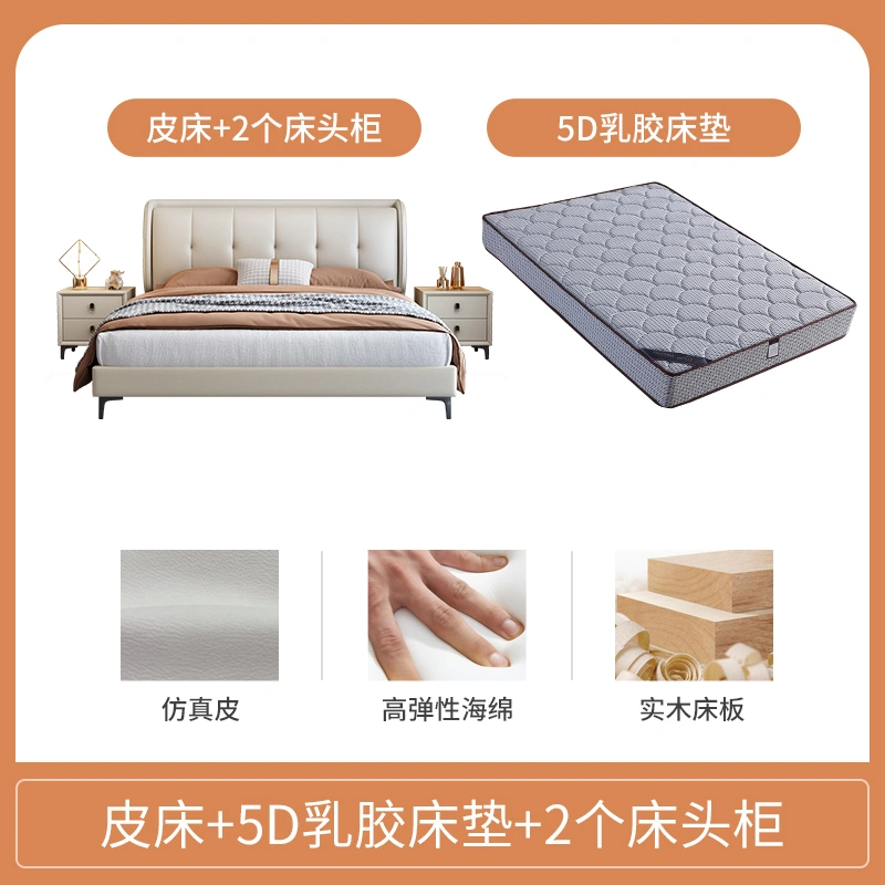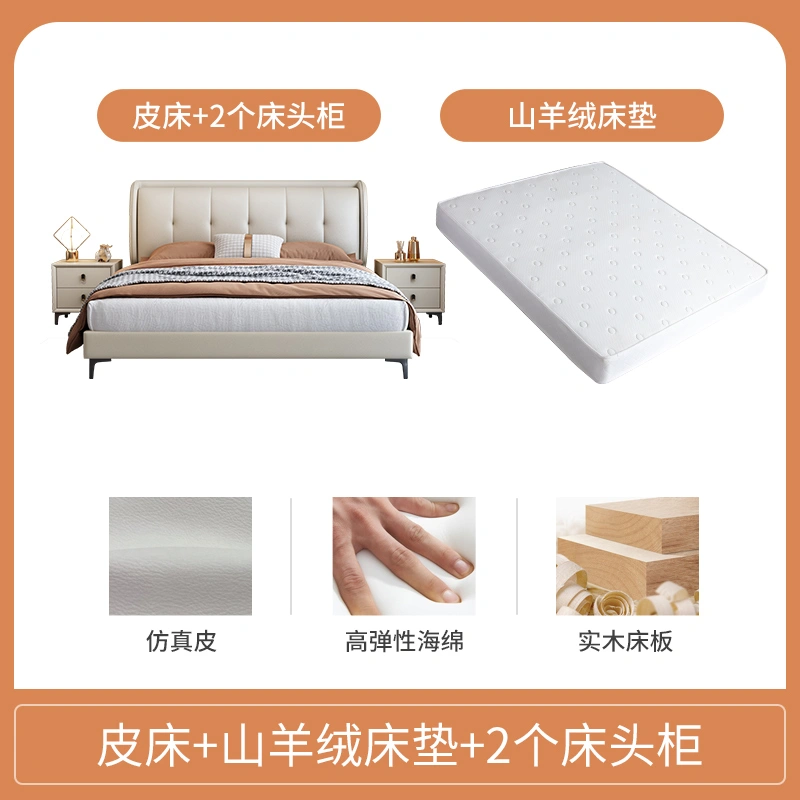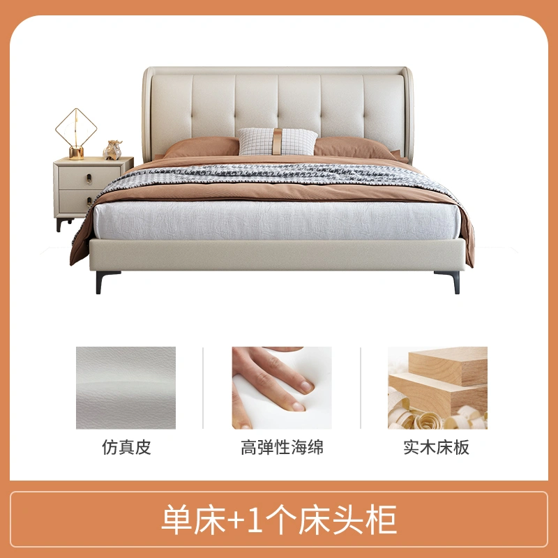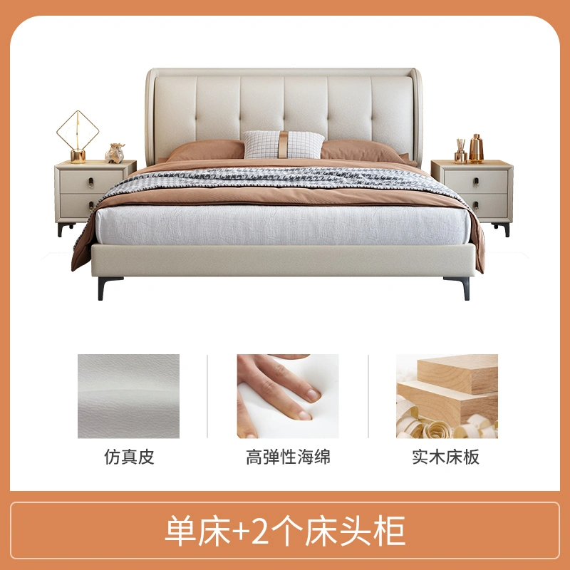 Luxurious Modern Minimalist Leather Bed, Double Master Bedroom Large Bed, High-End Elegant Solid Wood Bed, Trendy Upholstered Wedding Bed