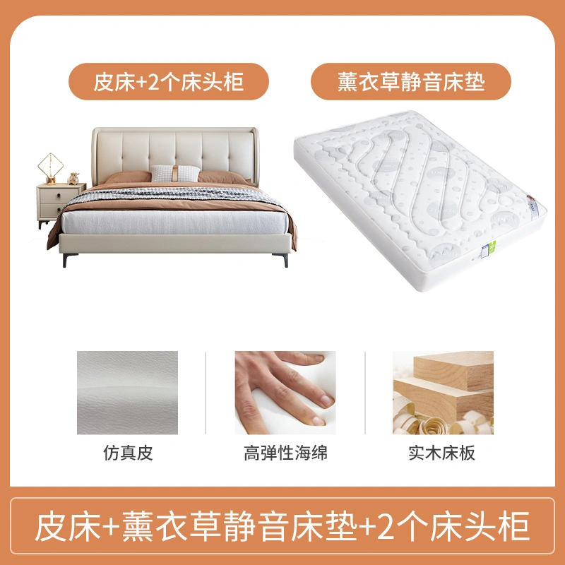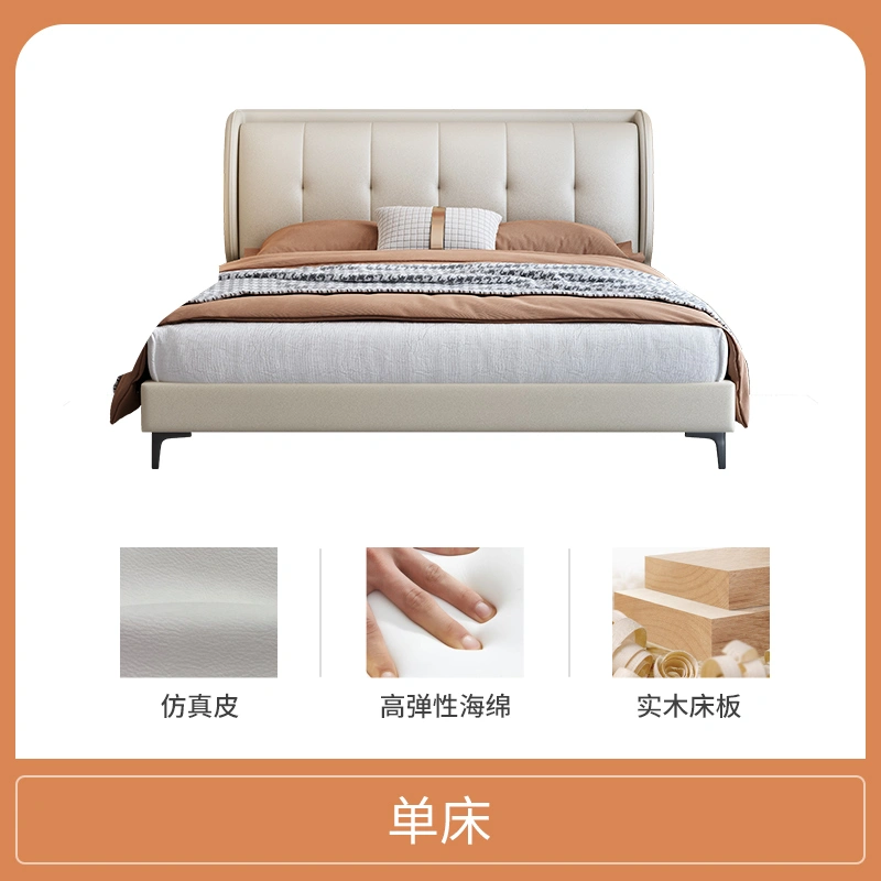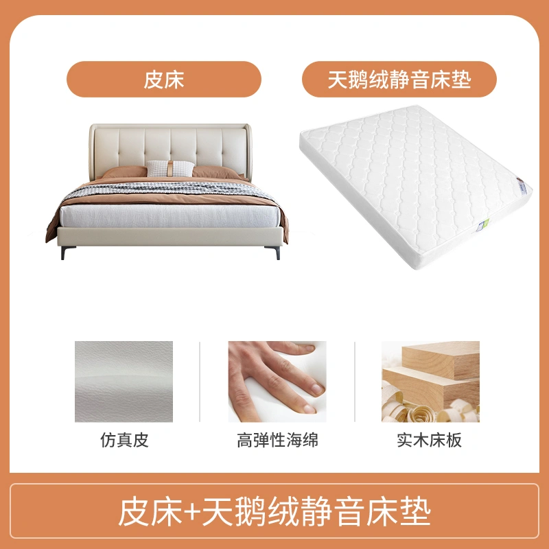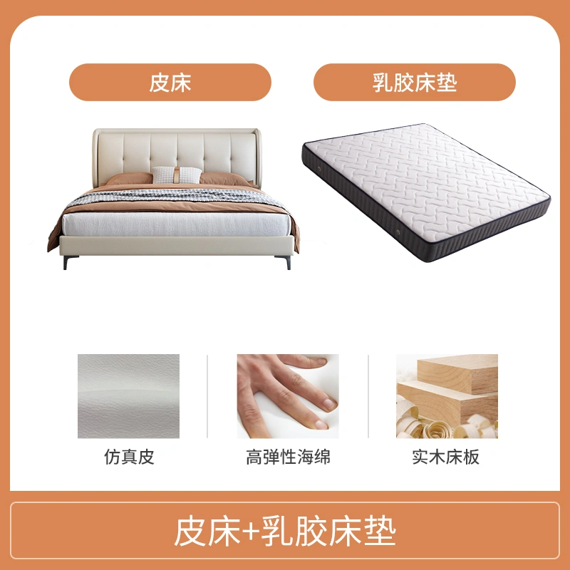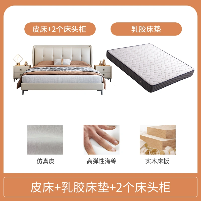 Luxurious Modern Minimalist Leather Bed, Double Master Bedroom Large Bed, High-End Elegant Solid Wood Bed, Trendy Upholstered Wedding Bed