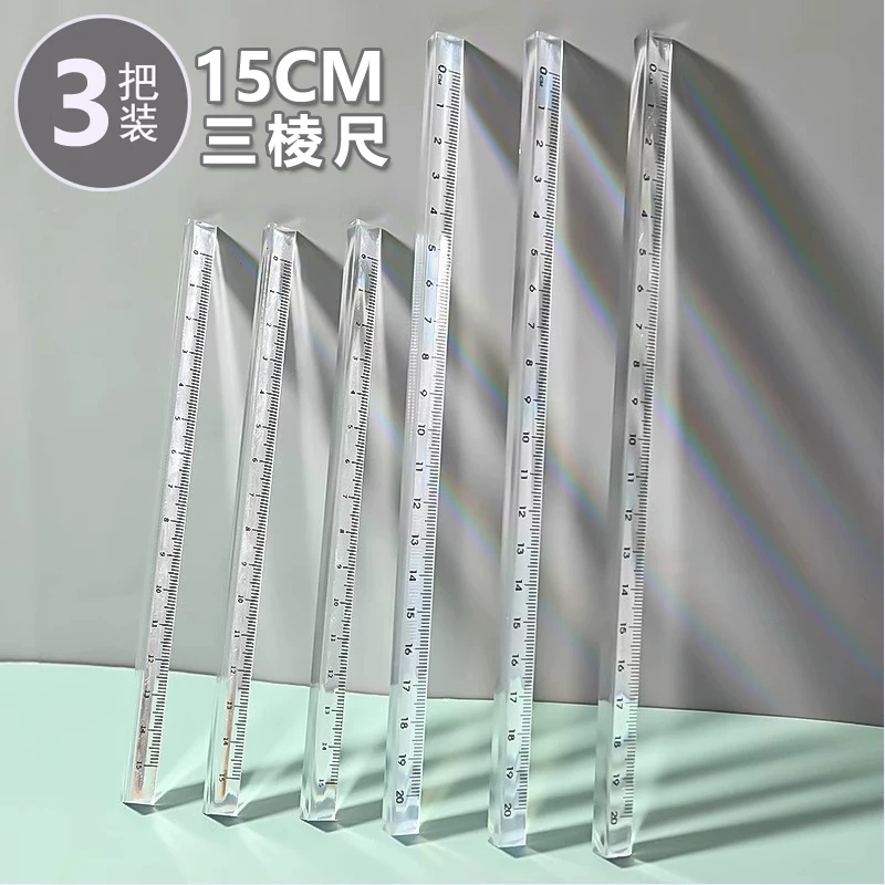 Transparent Three-Dimensional Crystal Triangular Ruler, Colorful and Aesthetically Pleasing, 15cm Straight Ruler for First-Grade Elementary School Students, Drawing Triangle Ruler