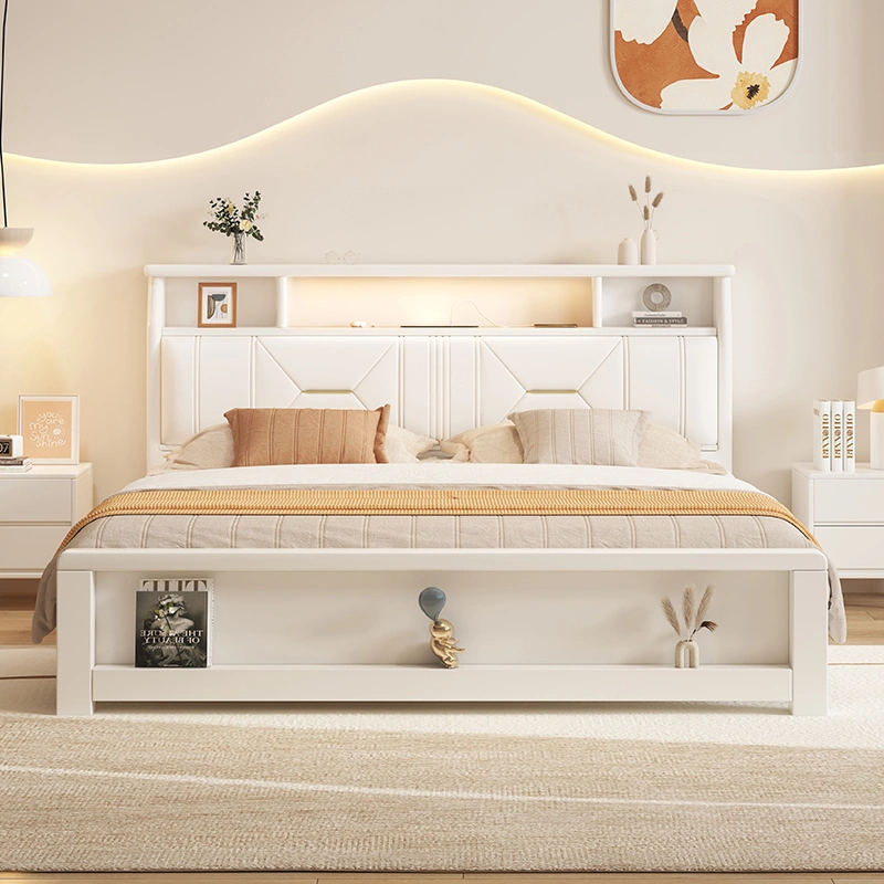 White Solid Wood Bed Modern Minimalist Small Apartment Cream Style American 1.8 m Double Bed Master Bedroom 1.2 kids Storage