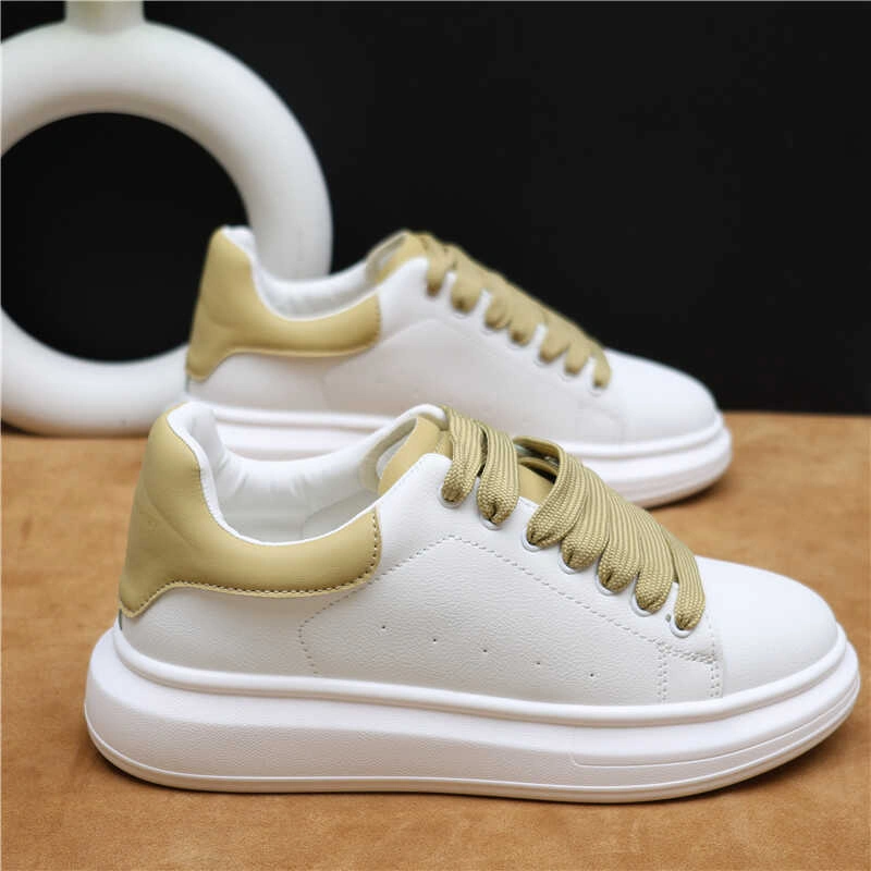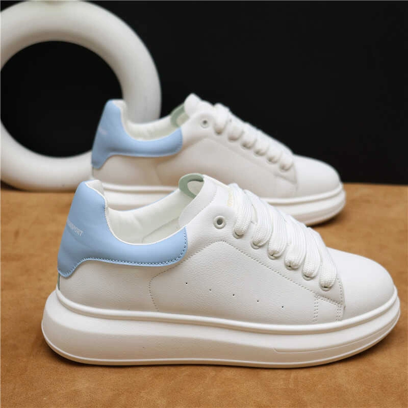 Trendy Couple White Sneakers 2024 New Versatile Men's Shoes Trendy Height-Increasing Casual Leather Shoes White Women's Shoes