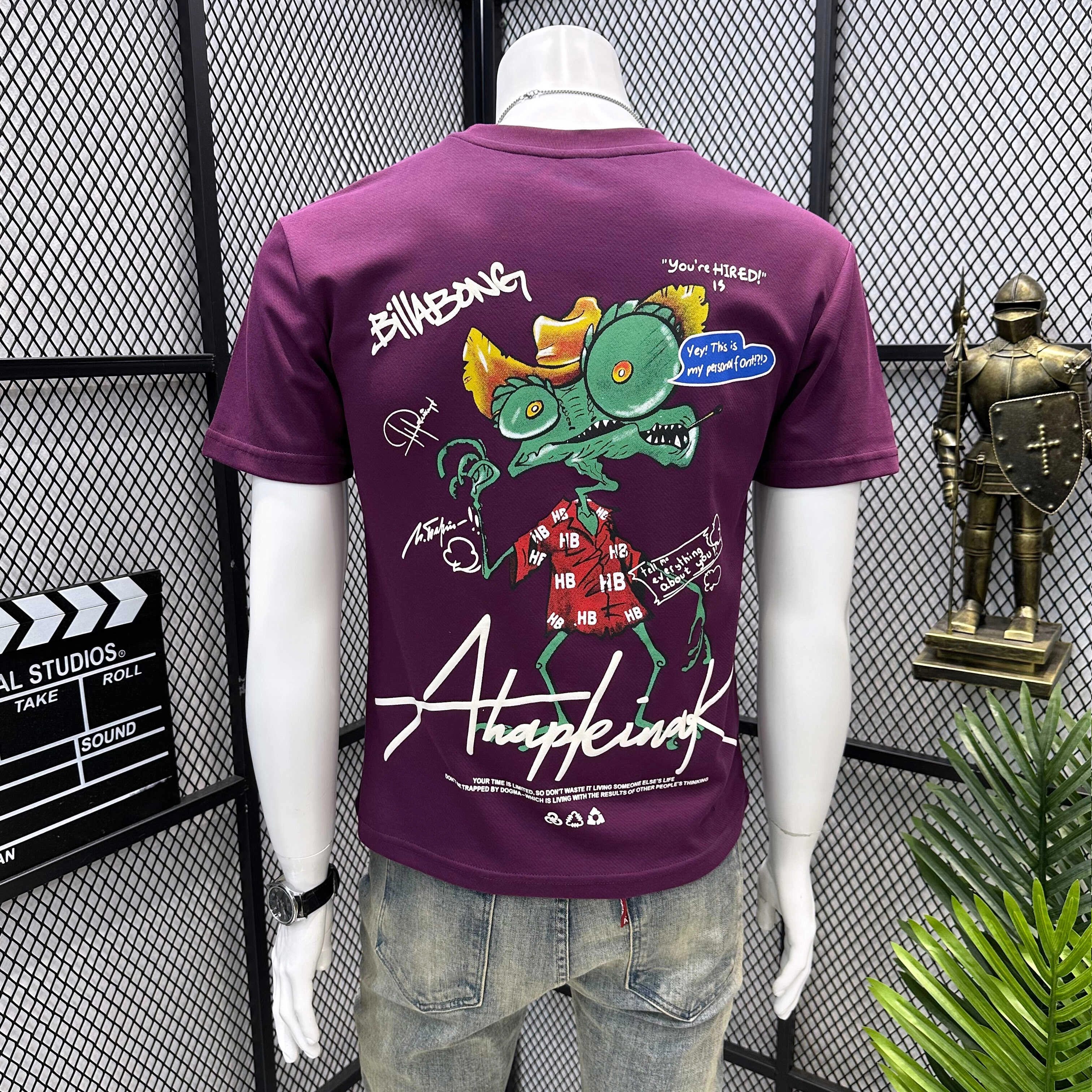 High-End Imported Embroidered Printed Short-Sleeve T-Shirt for Men, Couple's Half-Sleeve Tee, Men's American Retro Style