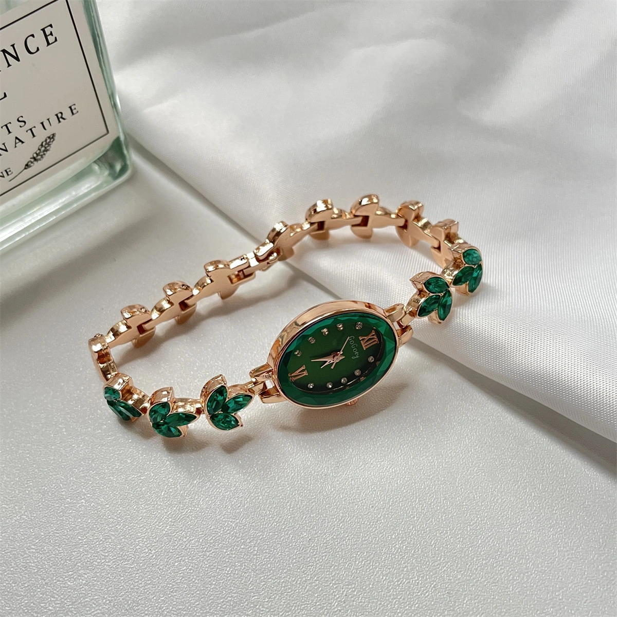 Emerald Diamond Watch for Women, Simple, Exquisite, Compact, Elegant, Luxurious, Oval-Shaped Violet Bracelet Watch for Women