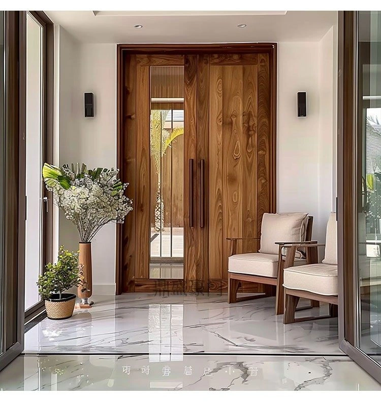 Wabi-Sabi Style Solid Teak Wood Door for Courtyard Villa, Rural Self-Built House, Bedroom Door, Antique Wooden Door, Single-Opening Entrance Door