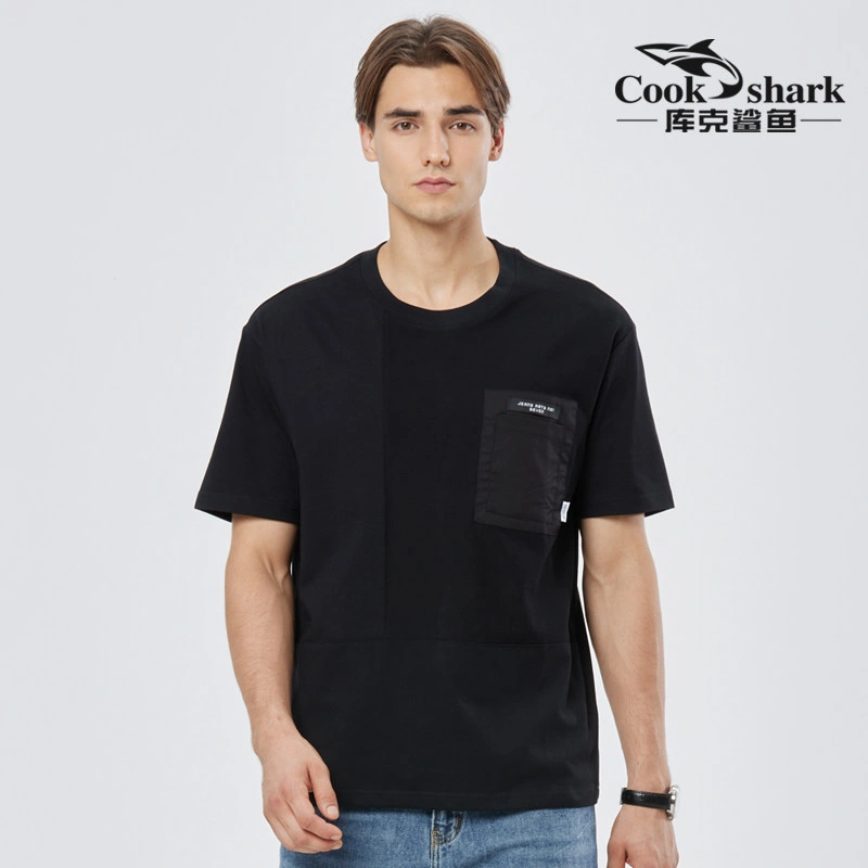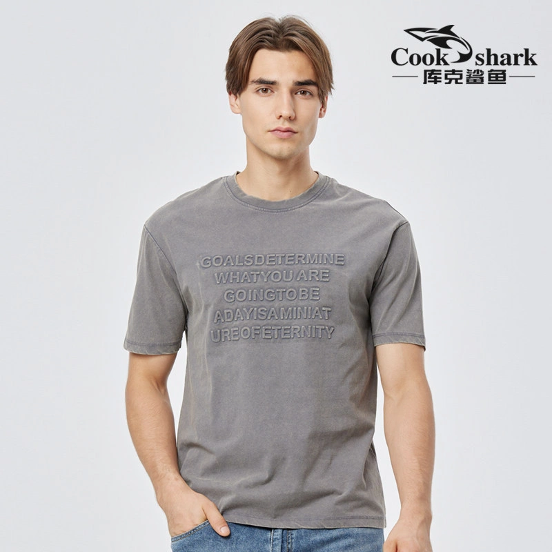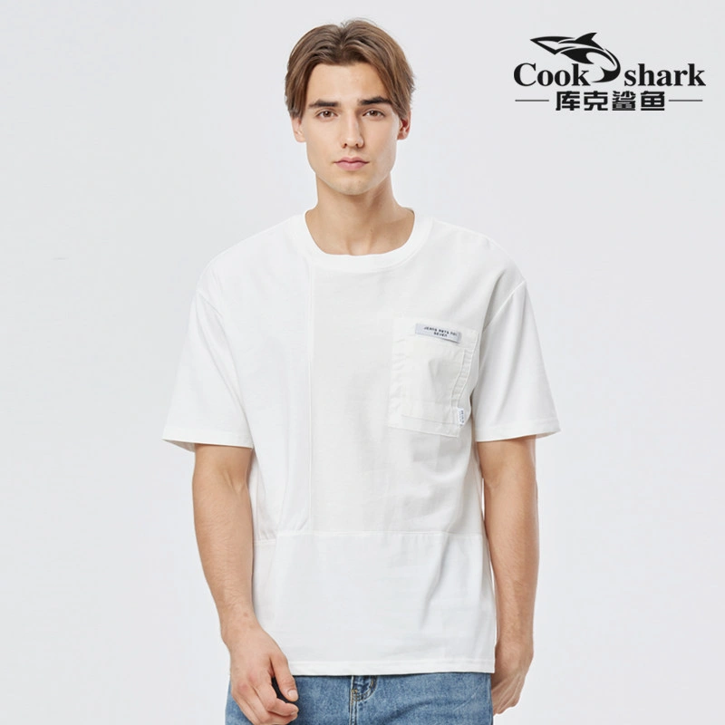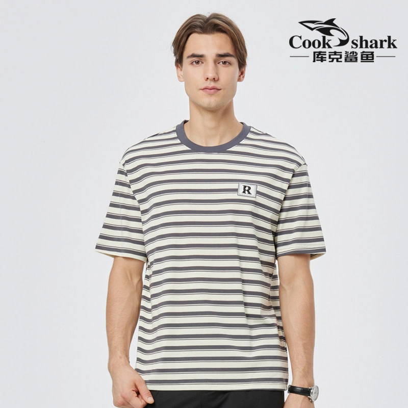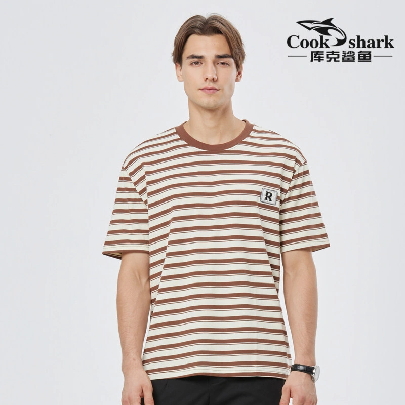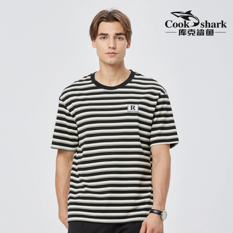 Cook Shark Short-Sleeve T-Shirt for Men, Summer 2024 New Style, Half-Sleeve Trendy Loose Fit White Casual Striped Tee