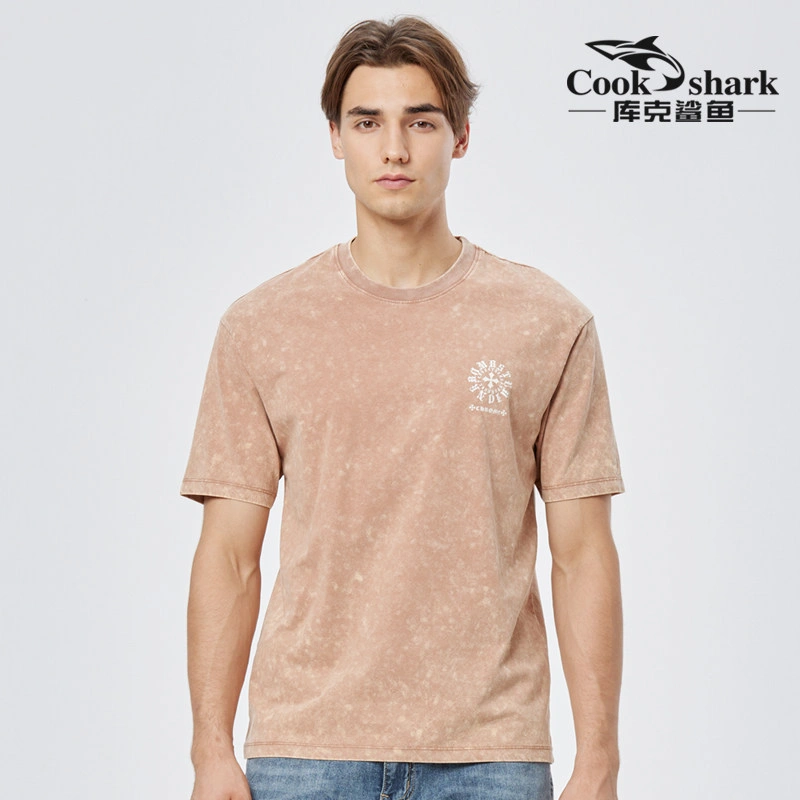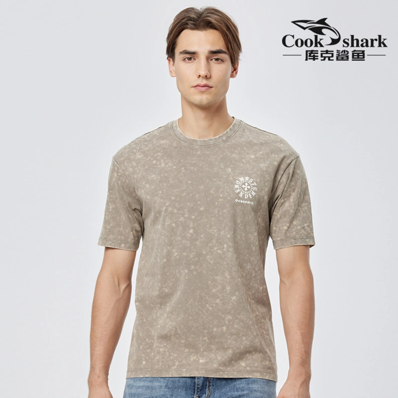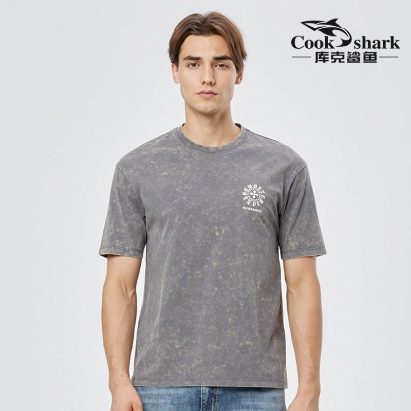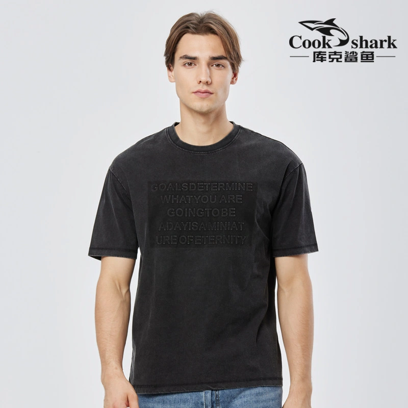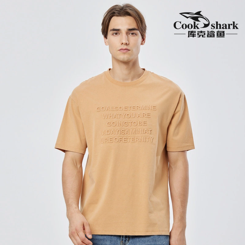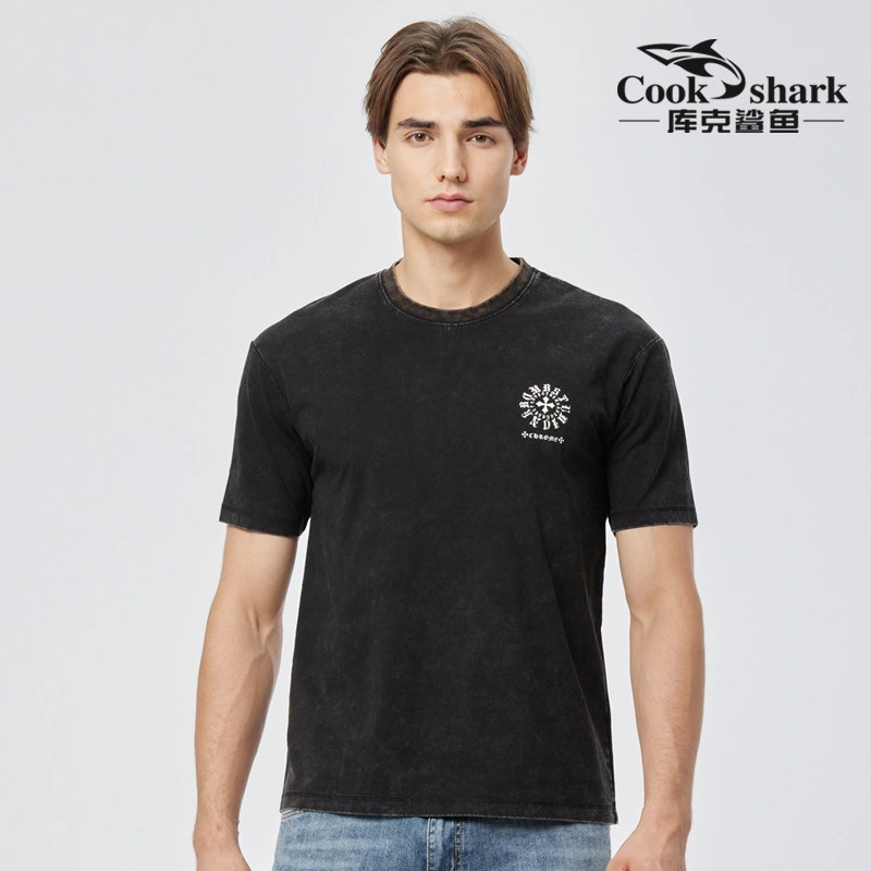 Cook Shark Short-Sleeve T-Shirt for Men, Summer 2024 New Style, Half-Sleeve Trendy Loose Fit White Casual Striped Tee