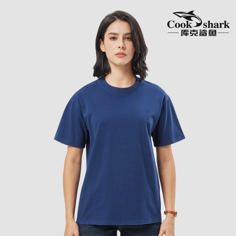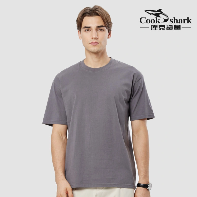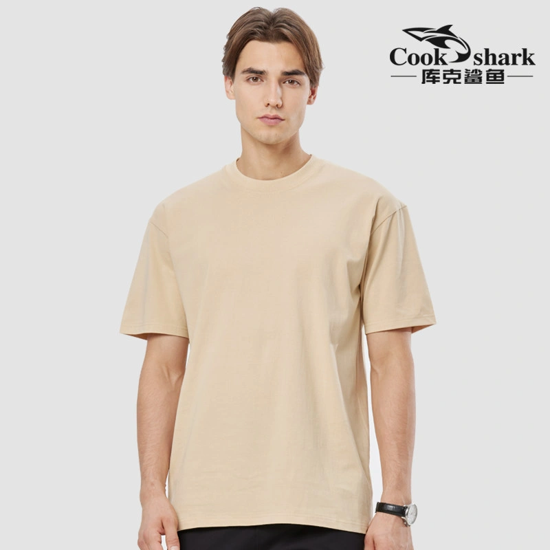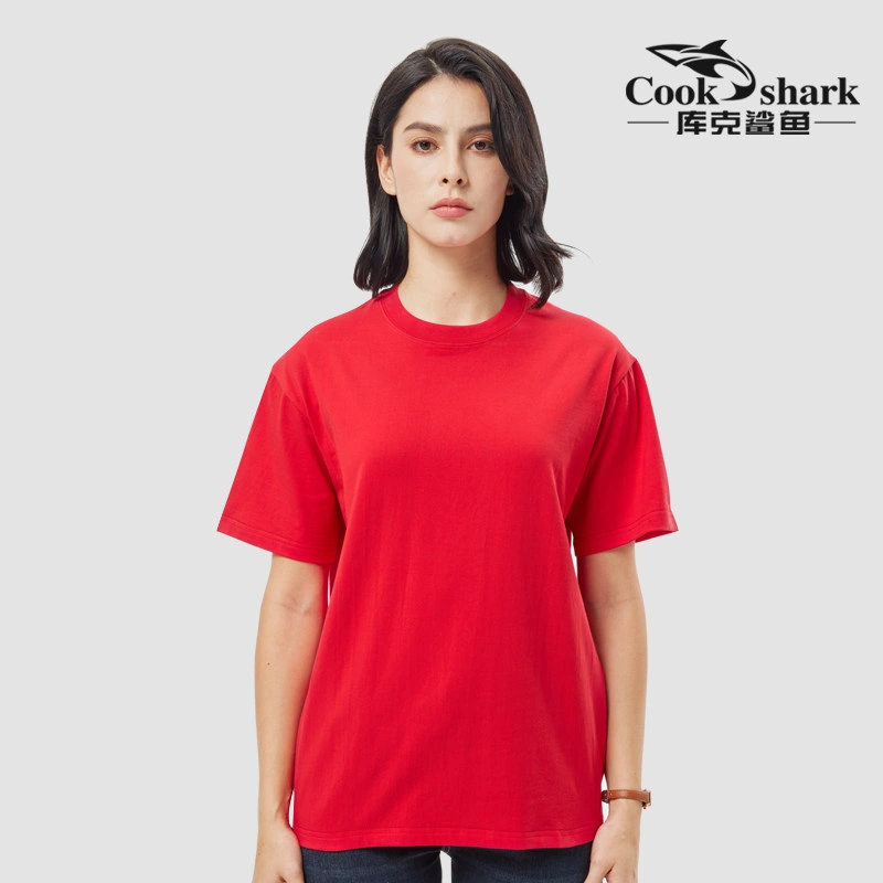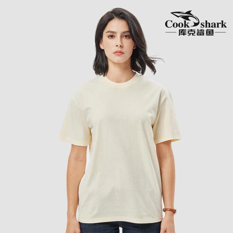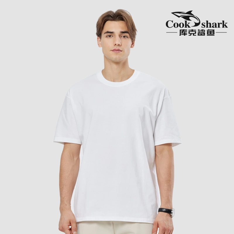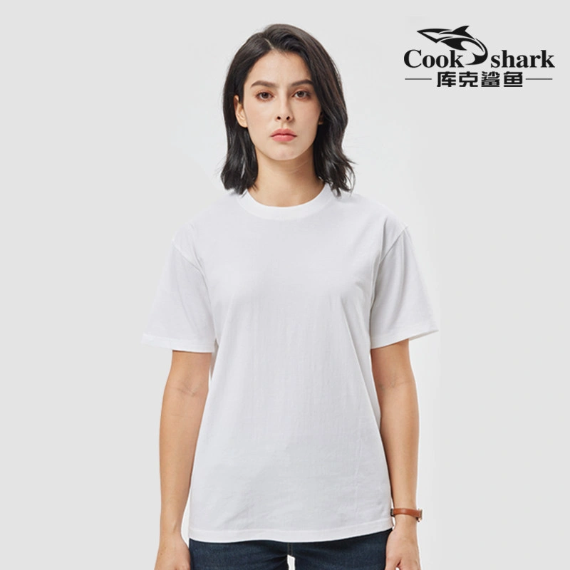 Cook Shark Pure Cotton Short-Sleeve T-Shirt for Men and Women, 2024 Summer New Style, Couple's Loose Fit Trendy Brand White Top