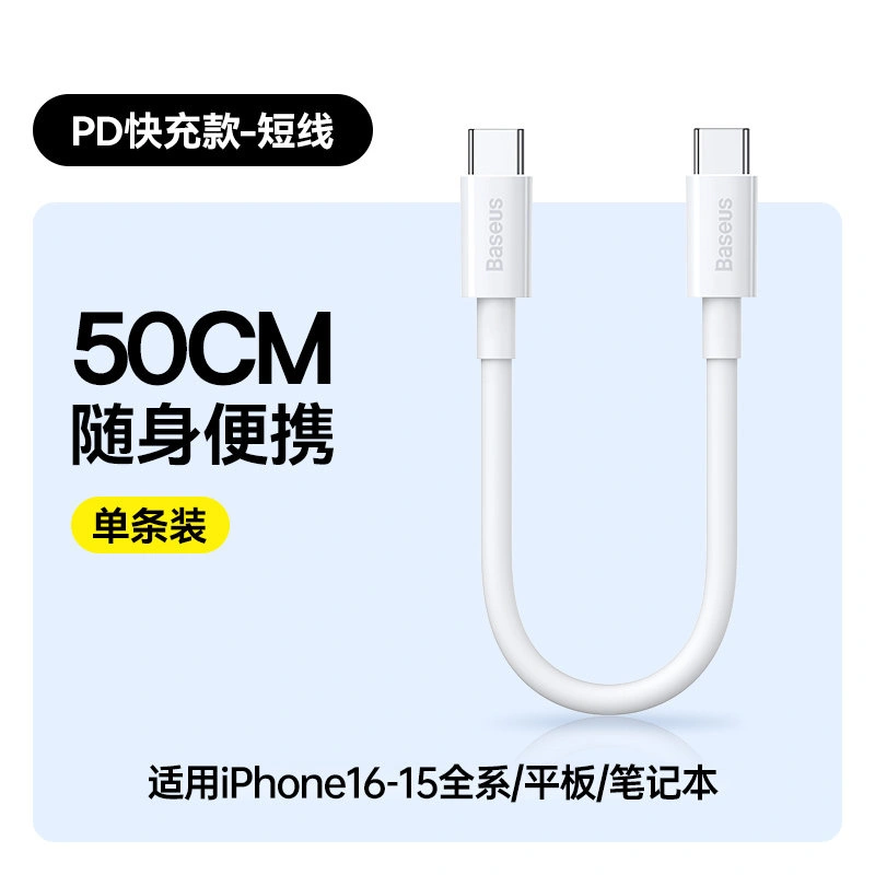 Baseus Power Bank Short 16 Data Cable Compatible with Apple 15, Huawei, iPhone 14 Pro, 17, Dual Type-C Charger Cable, USB Charging Cable, Pd Fast Charging, Portable 25cm Dedicated C to C Android Device