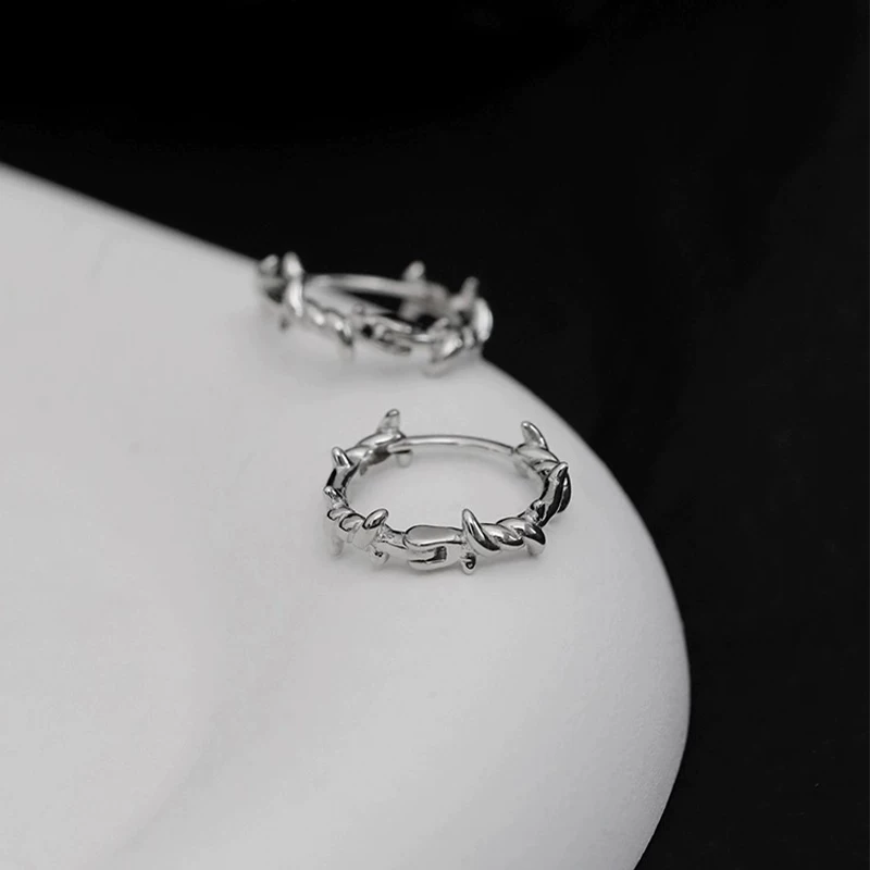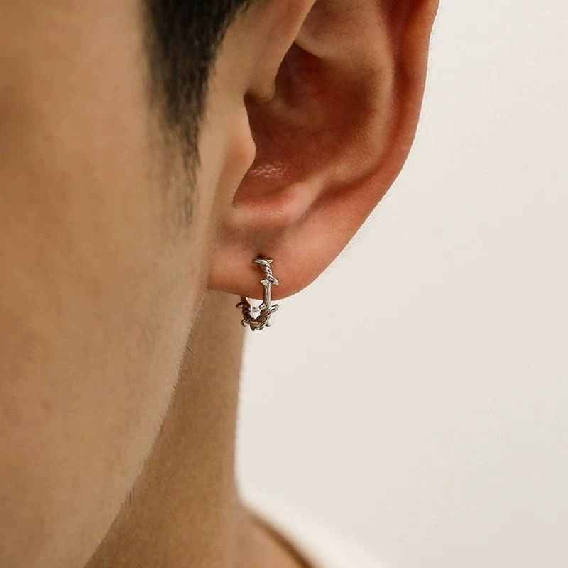 Thorn Silver Needle Earrings for Men, Single Piece, High-End Vintage Design, Stud Earrings, Cool and Trendy Ear Cuffs for Men