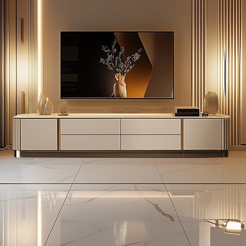 Slate Tv Cabinet and Coffee Table Set, Light Luxury Style, Modern High-End Home Use, Extended Motor Cabinet, Italian-Style Floor-Standing Table Cabinet
