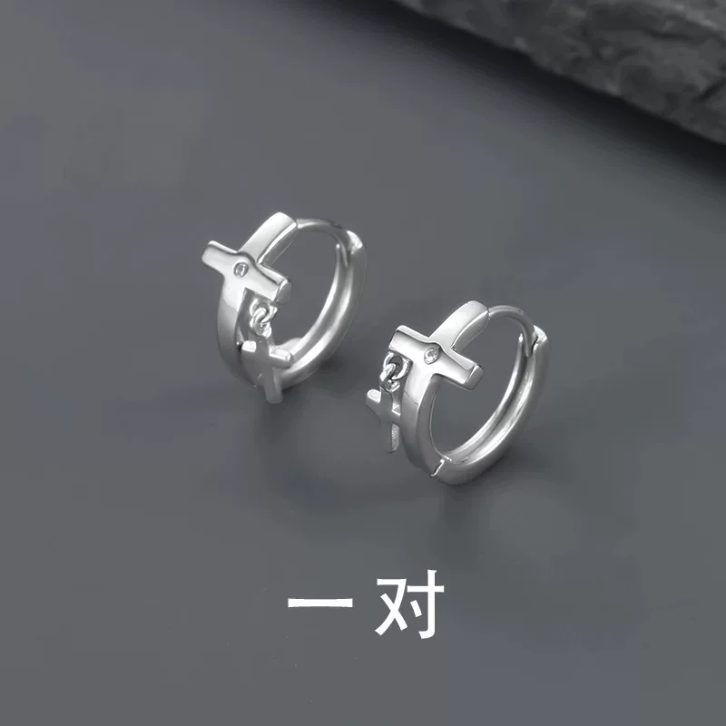 Double Cross Earrings for Men, Niche Design, High-End Feel, Elegant Women's Hoop Earrings, Men's Ear Clips, Trendy Ear Accessories