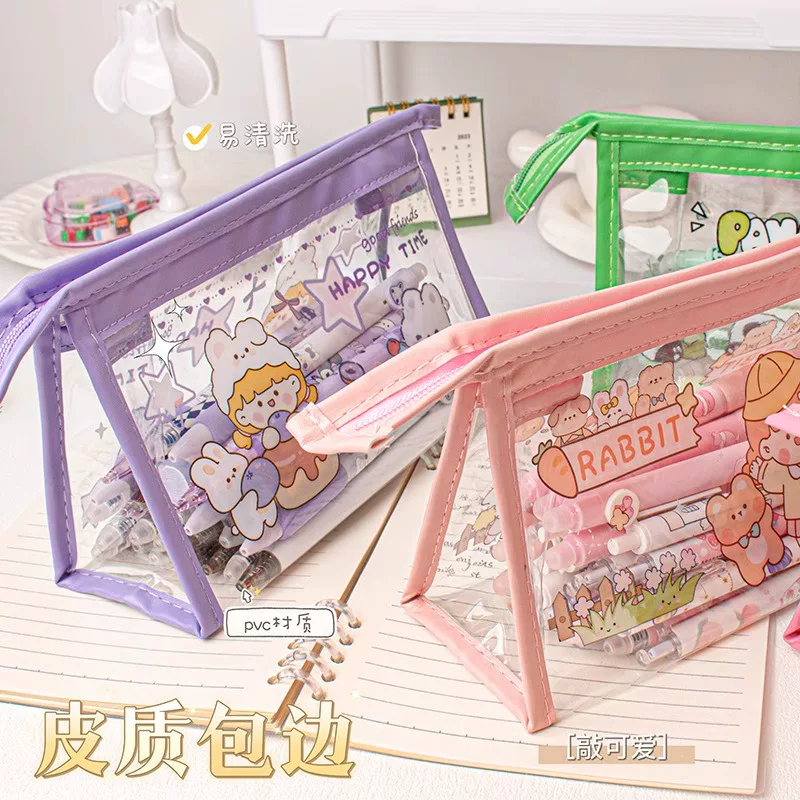 Transparent Pencil Case Cartoon Capybara New Pvc Cute Capybara Stationery Bag Creative Student Supplies Storage Bag