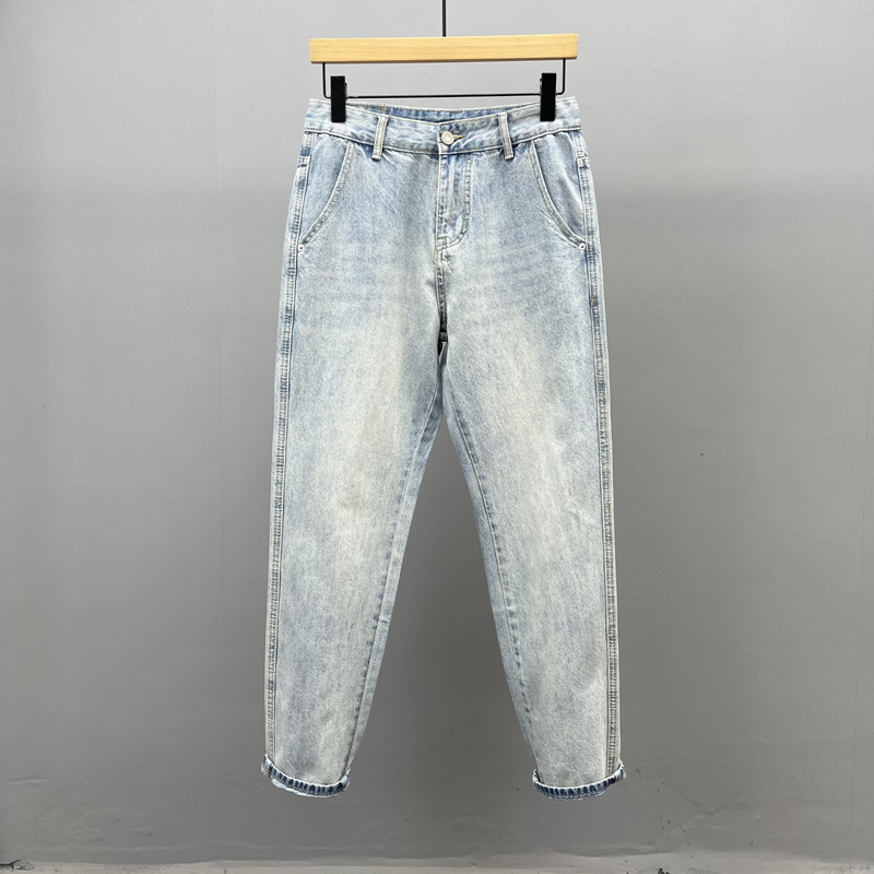 Spring and Summer Vintage-Style Light Blue Straight-Leg Jeans with Diagonal Pockets for Men, American Retro High Street Cropped Pants for Young Men