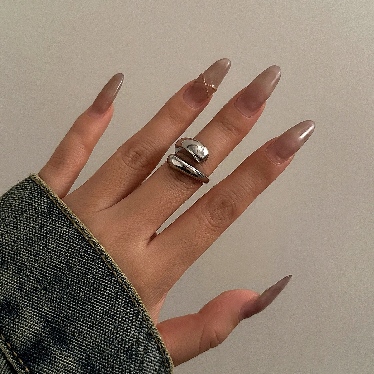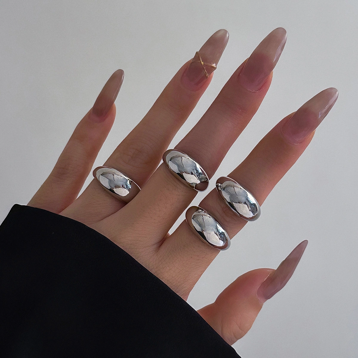 ins Trendy Rings for Women, Niche Design, Fashionable, Unique, Light Luxury, High-End Geometric Curved Ring Set Combination