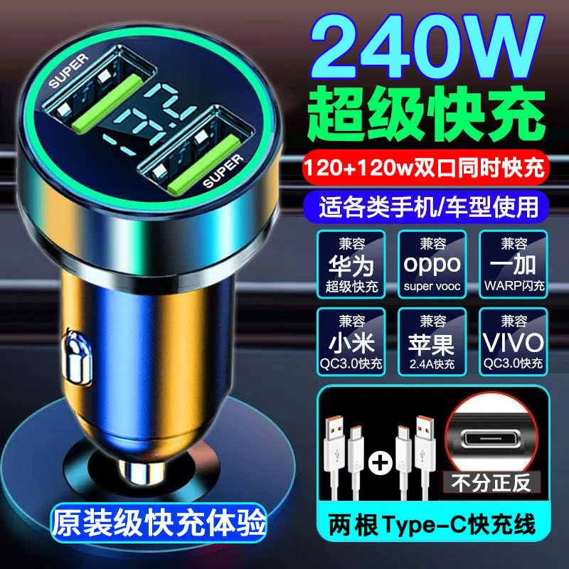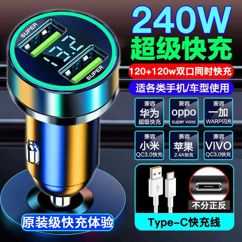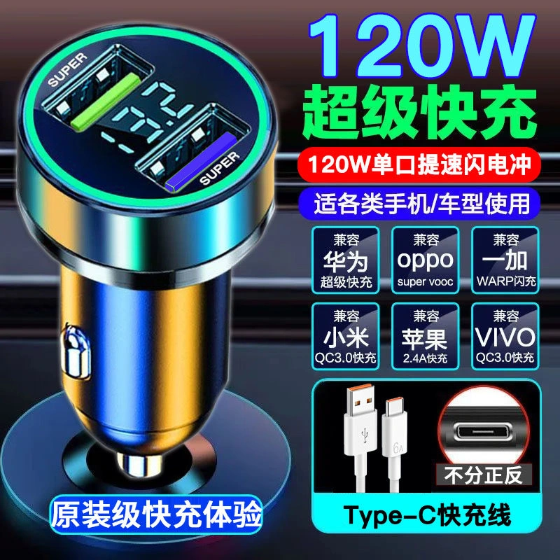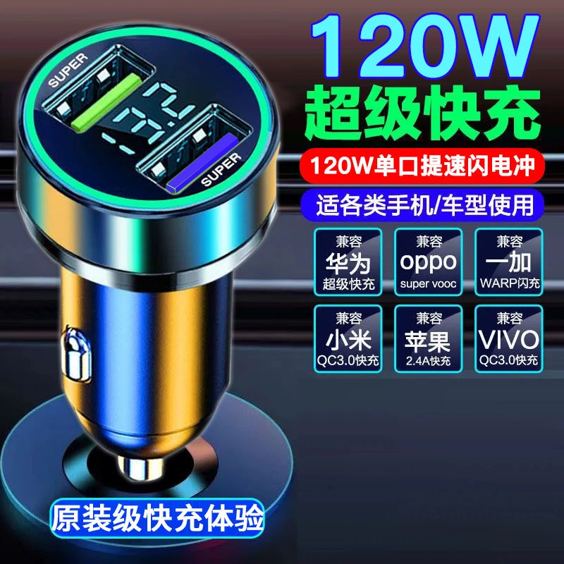 120W Car Charger Super Fast Charging One-To-Three Cigarette Lighter Adapter Plug Mobile Phone USB Car Charger