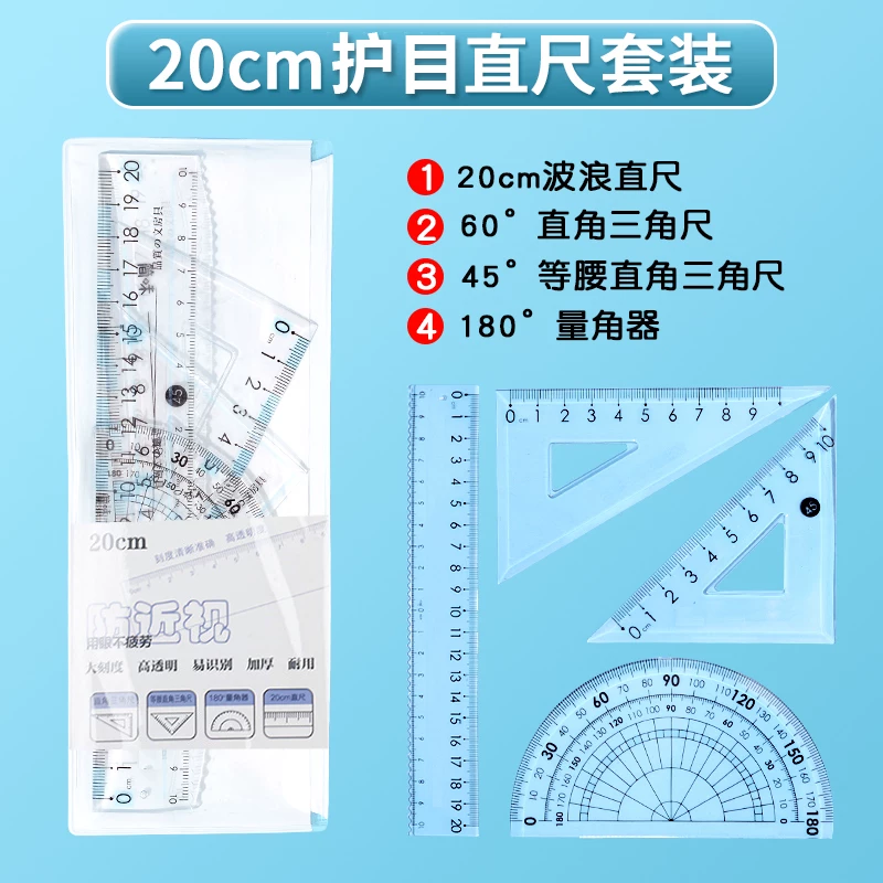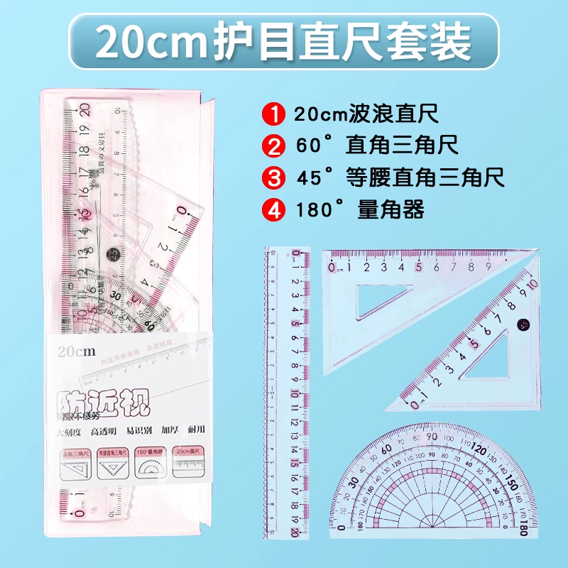 Anti-Myopia Wave-Pattern Ruler for Primary School Students, 15cm 20cm High-Quality Multifunctional Drawing Ruler Set