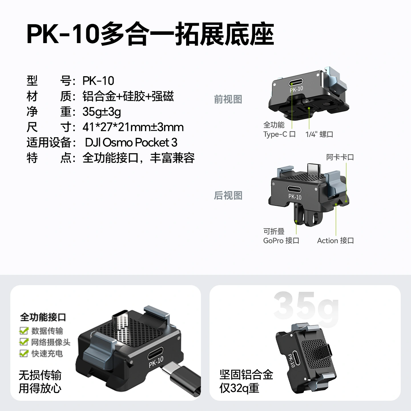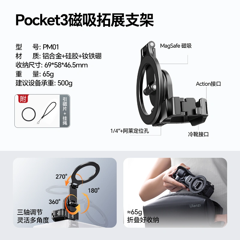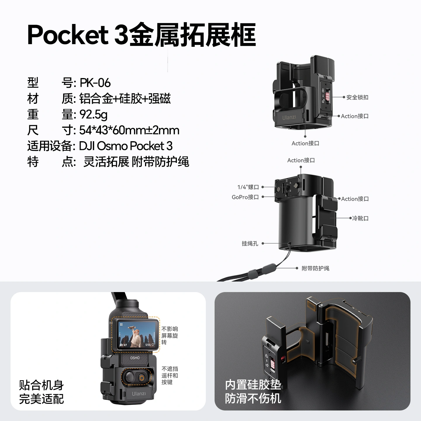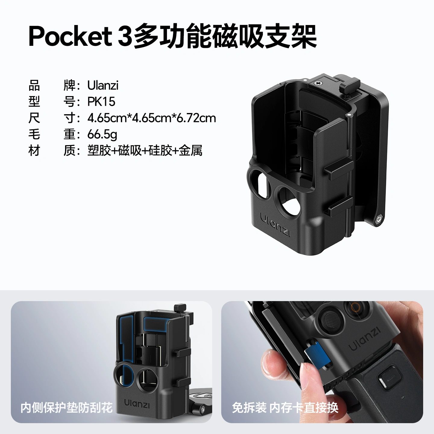 Ulanzi Accessories Collection for Dji Pocket 3: Tripod Base, Magnetic Mount, Expansion Frame, Protective Case, Backpack Clip, Car Mount, Suction Cup, Filter Storage Bag