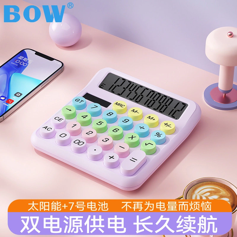 Bow Dopamine Color-Block Calculator Solar-Powered Office Financial Accounting Civil Servant Special Office Supplies Cute Student-Specific Student Supplies Computer Keyboard Portable Calculator for Home Use