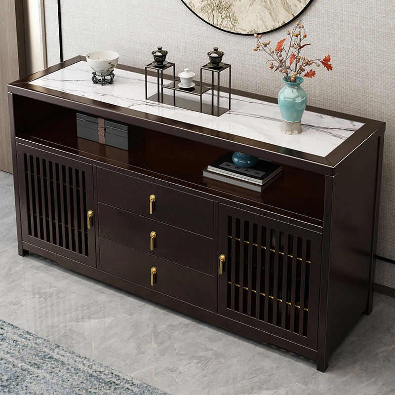 New Chinese Style Light Luxury Two-Door Sideboard Solid Wood Entrance Living Room Villa Solid Wood Tea Cabinet Wall Storage Tea Side Cabinet