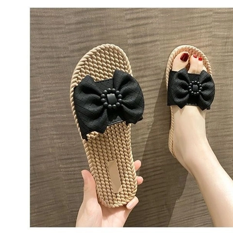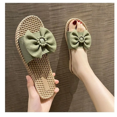 Sandals Korean Style Versatile Deodorant New Women's Slippers for Outer Wear Lightweight Bow Non-Slip Fashionable Wear-Resistant Summer