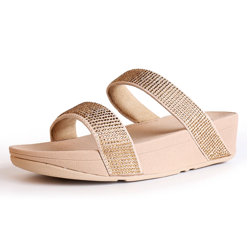 Original Women's Genuine Leather Slip-On Sandals with Rhinestones, Beach Casual Slippers, Fashionable Summer New Style